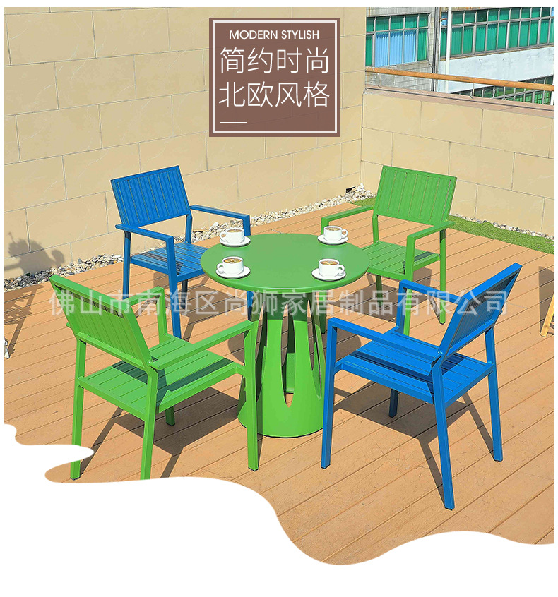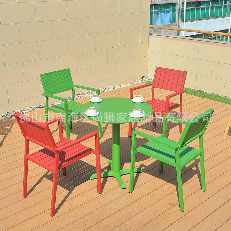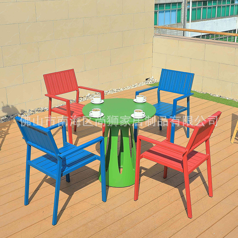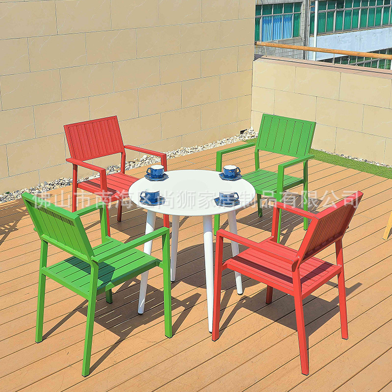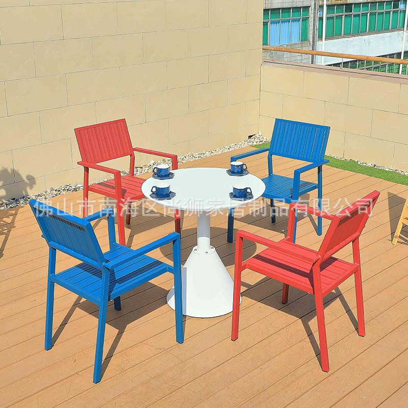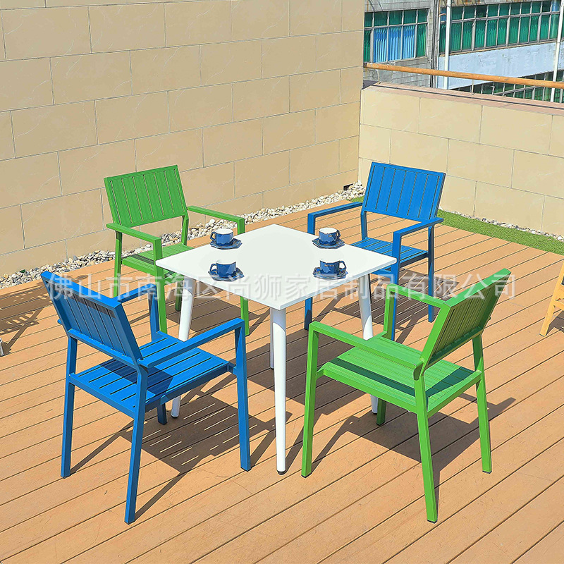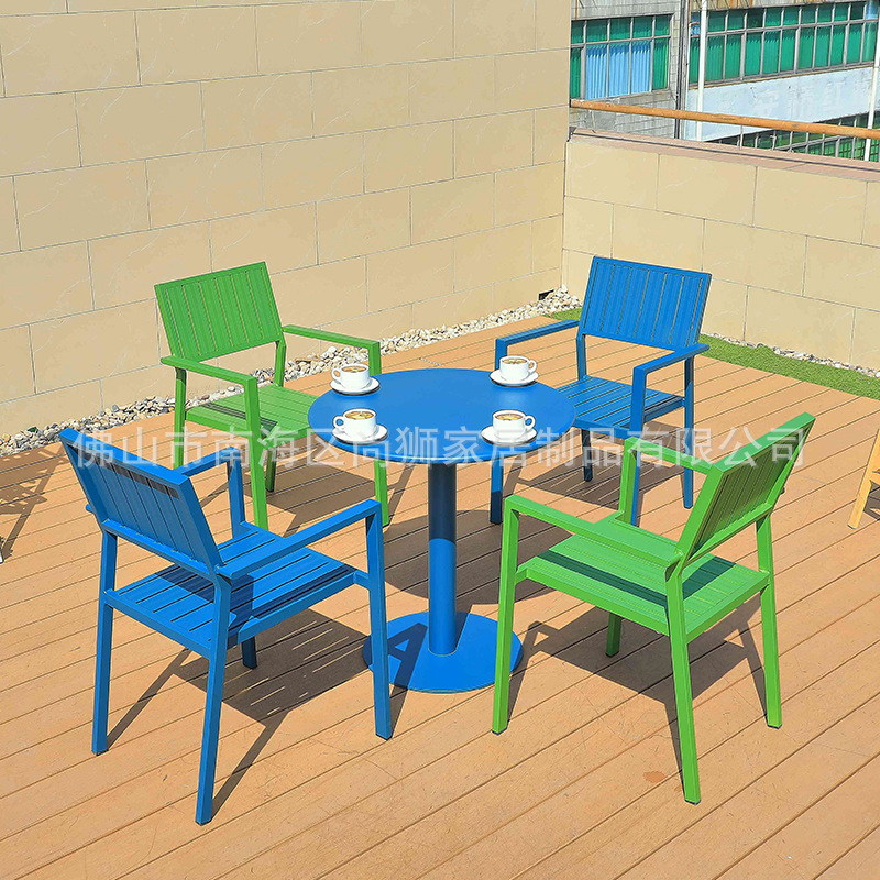 안뜰 야외 테이블 의자 발코니 야외 우유 찻집 커피 숍 컬러 올 알루미늄 레저 메탈 레저 테이블과 의자 조합