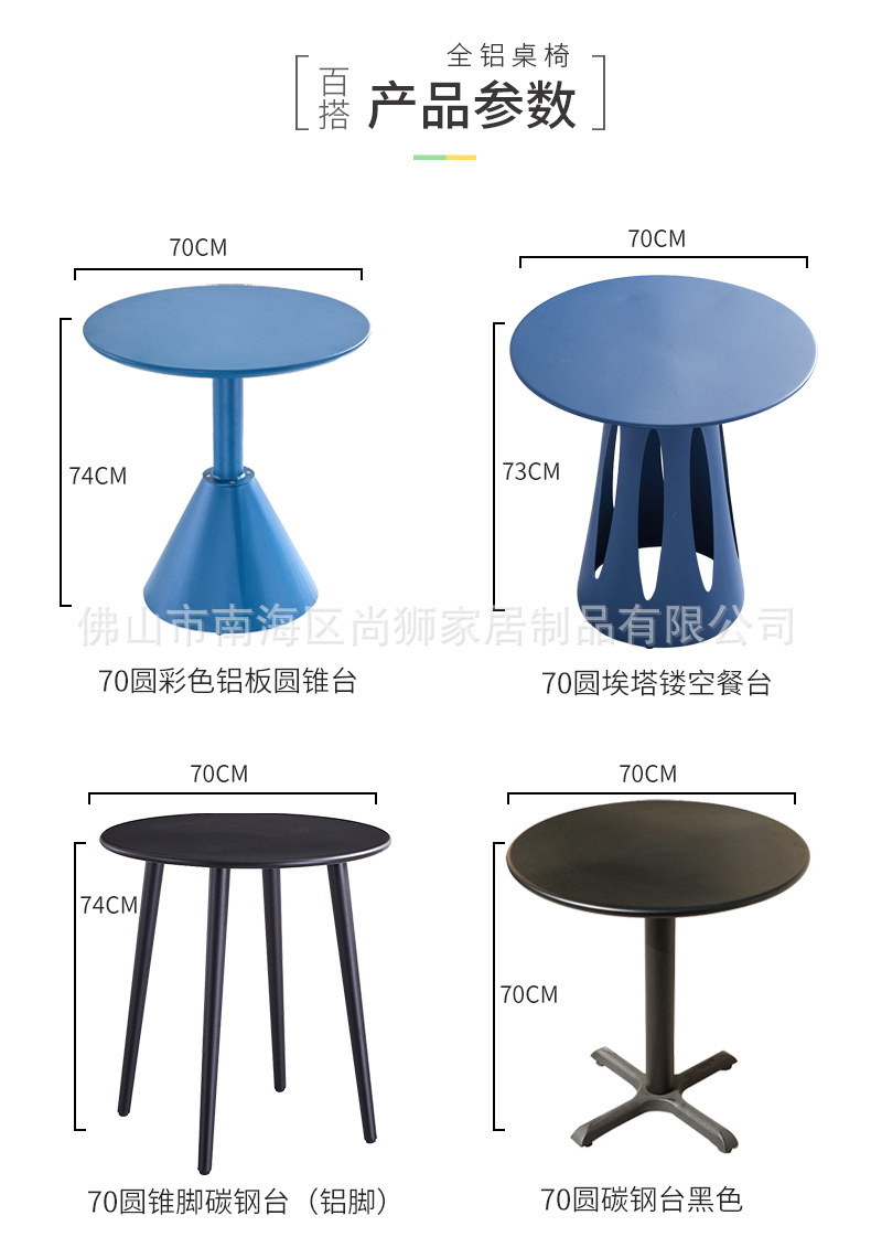 • 70 라운드 ETA 중공 테이블 + 컬러 알루미늄 플레이트 세로 패턴 의자