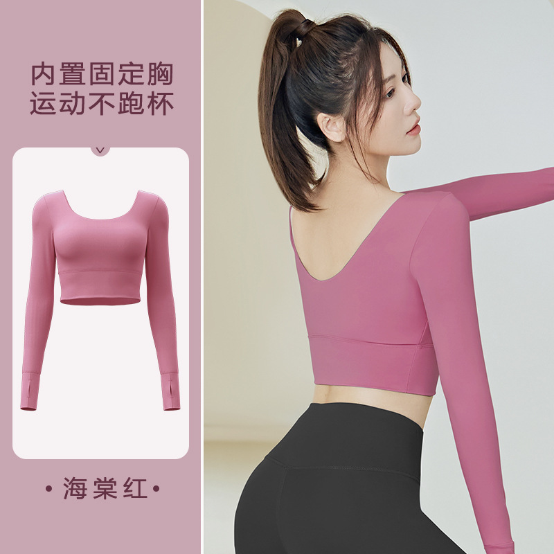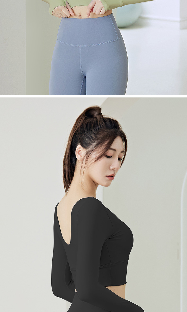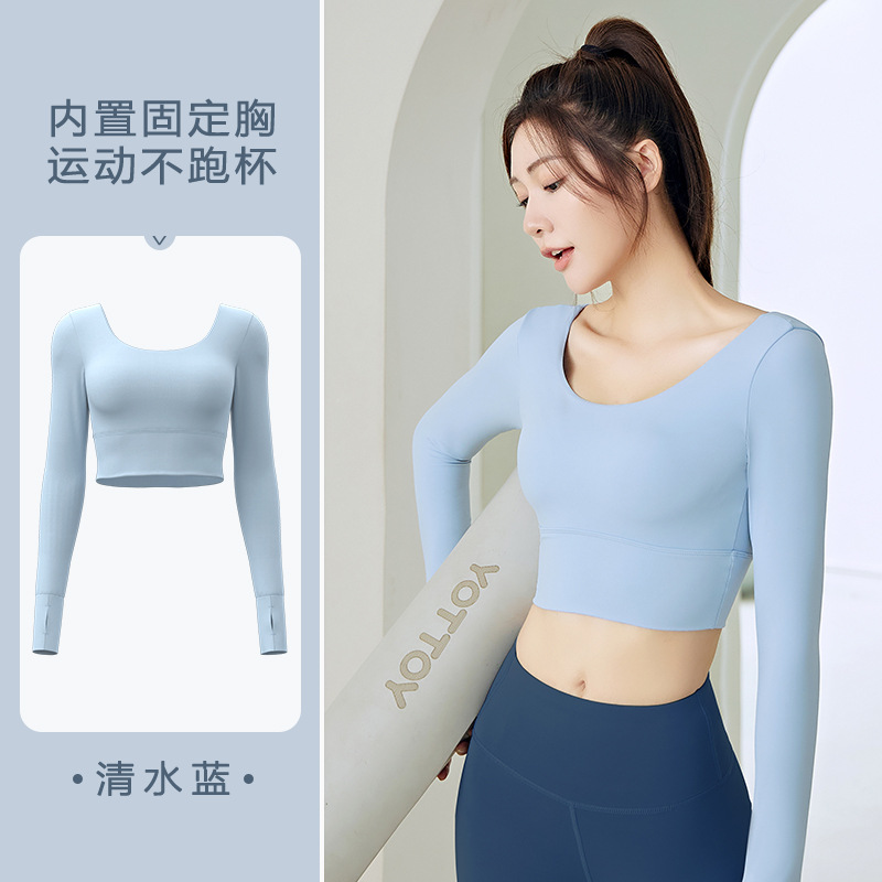 주이탕 단색 나일론 타이트핏 러닝 크롭탑 가슴 패드 내장 스포츠 피트니스 긴팔 요가복스토어 가기