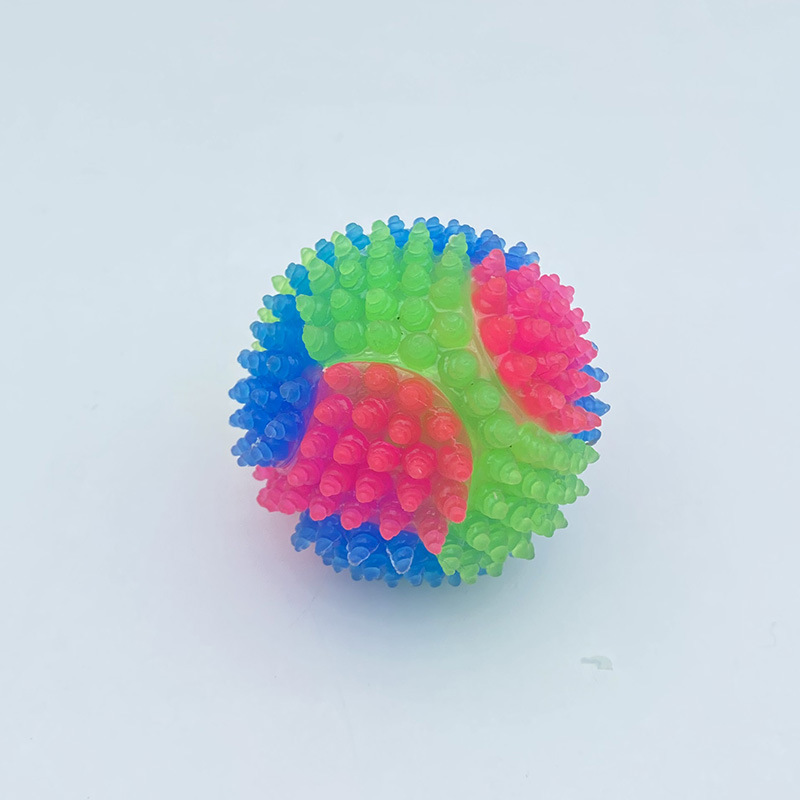 크로스보더 삼색 볼, 가시가 있는 6개 조각으로 된 강아지 씹기 장난감, 애완동물 마사지 볼, TPR 마사지 발광스토어 가기