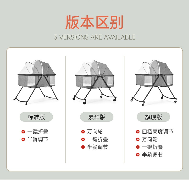 • 디럭스 버전-회색 (매트리스 + 모기장 + 바퀴 + 4 단 기어 조정)