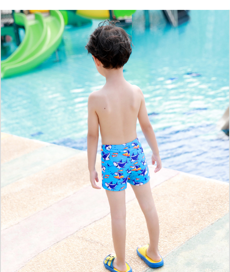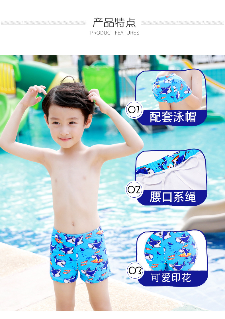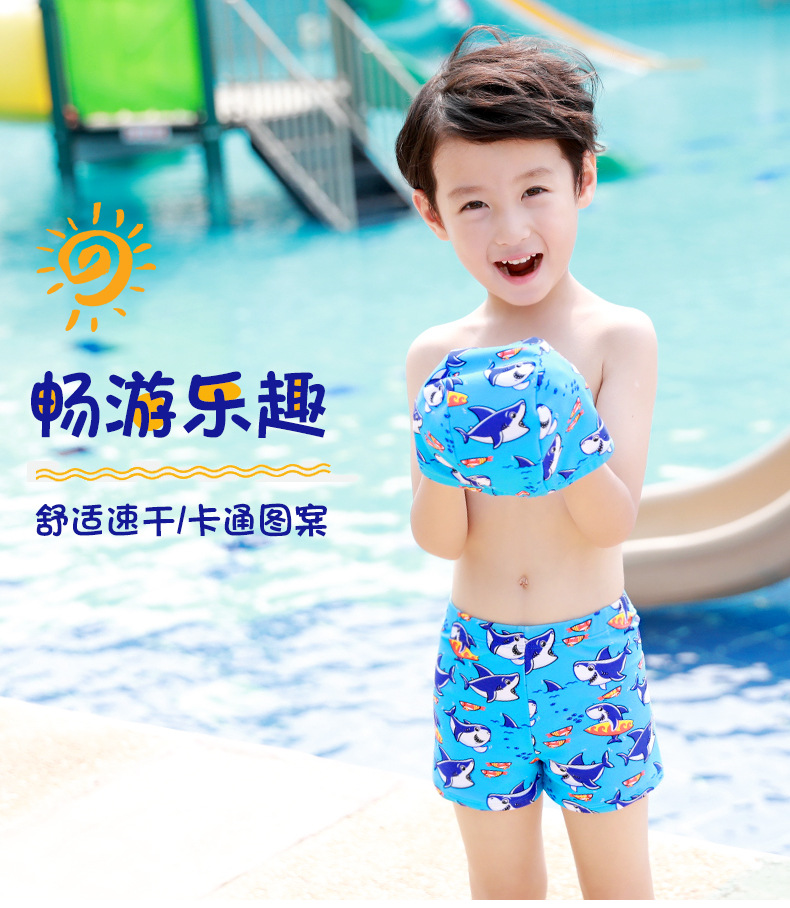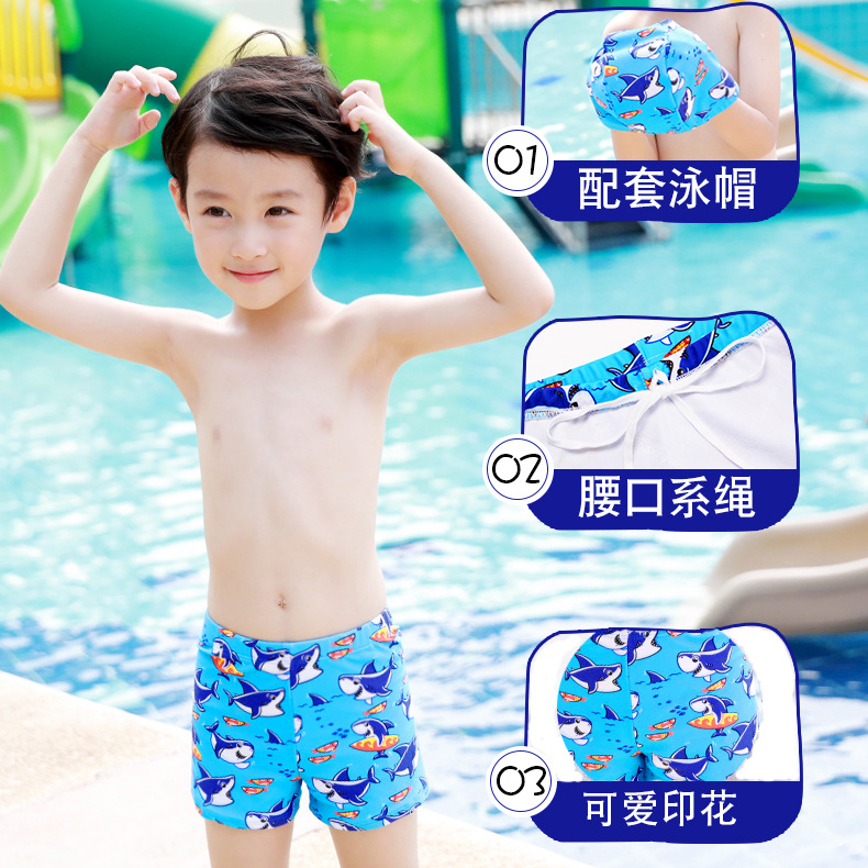어린이 수영복 남아 만화 캐릭터 플랫팬츠 활동적인 어린이 수영모 청소년 온천 편안한 캐주얼 상어