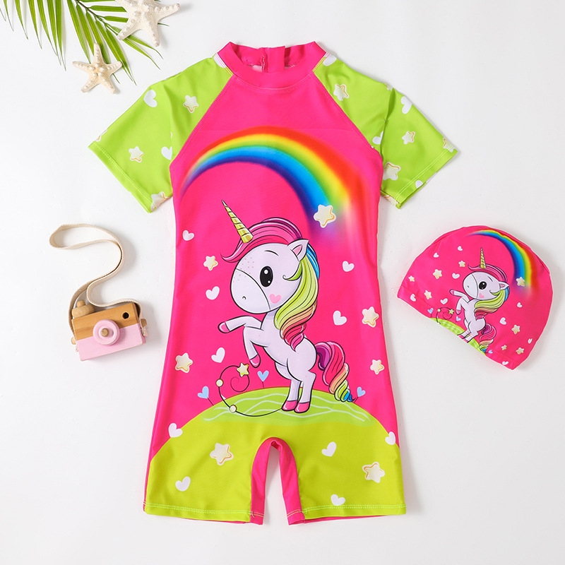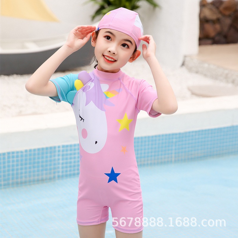 폭발적인 어린이 수영복 소녀 유니콘 원피스 소녀 공주 귀여운 학생 만화 속건 수영복 도매스토어 가기
