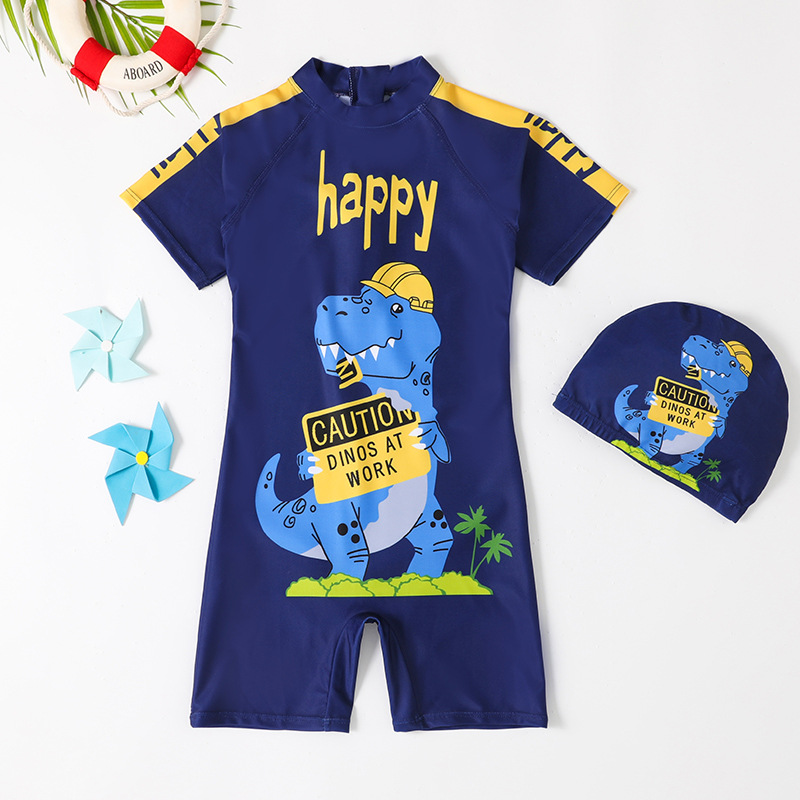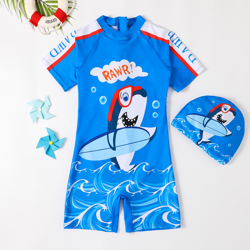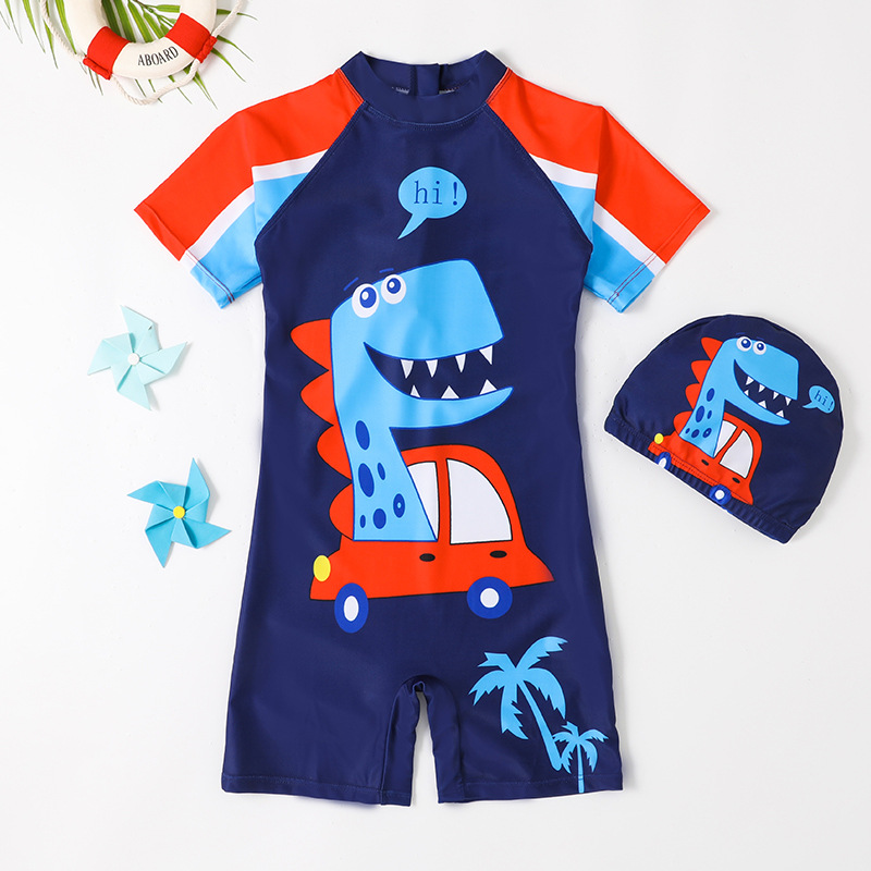男童连体卡通速干泳装男宝宝游泳衣大中小童平角沙滩防晒儿童泳衣
