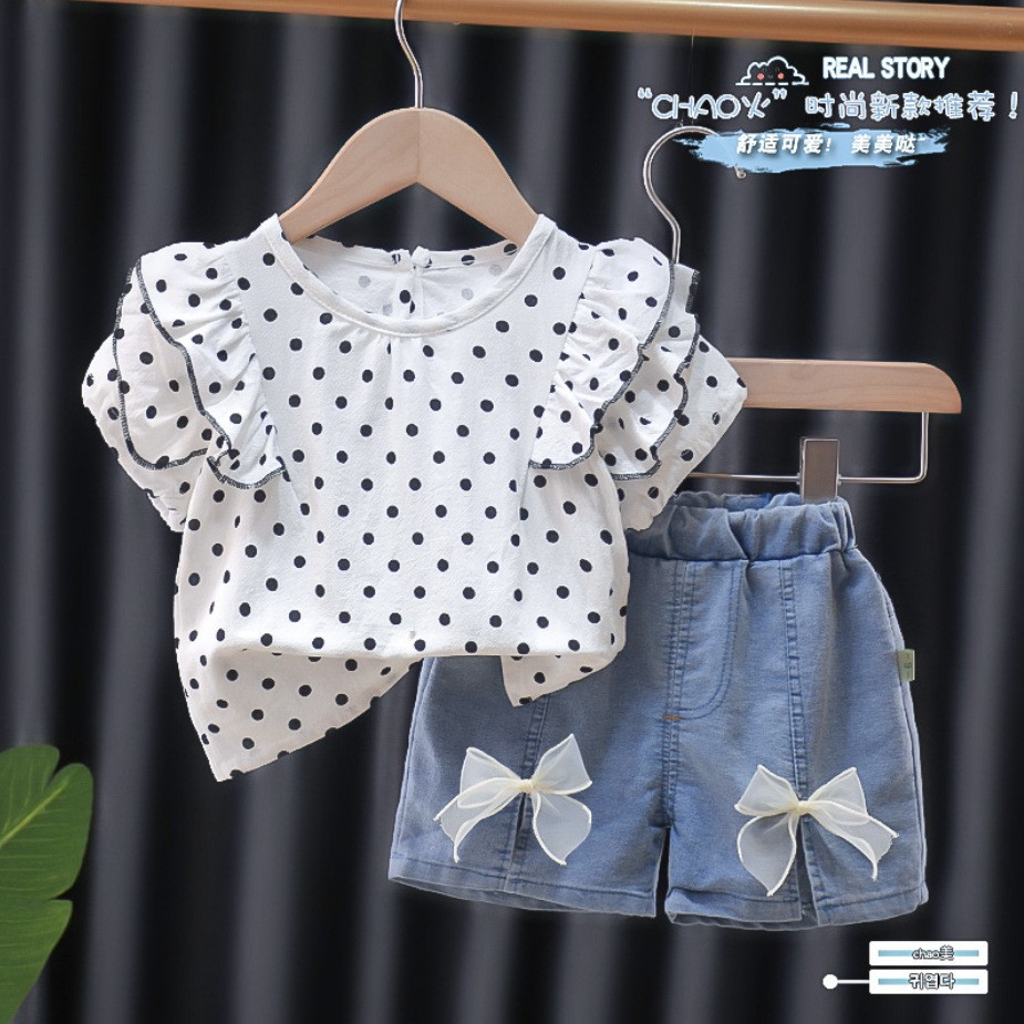 크로스 보더 아동복 여름 새 아동복 여름 착용 소녀 아기 유아 어린이 세트 반팔 세트 투피스 세트 유행스토어 가기
