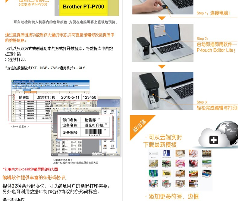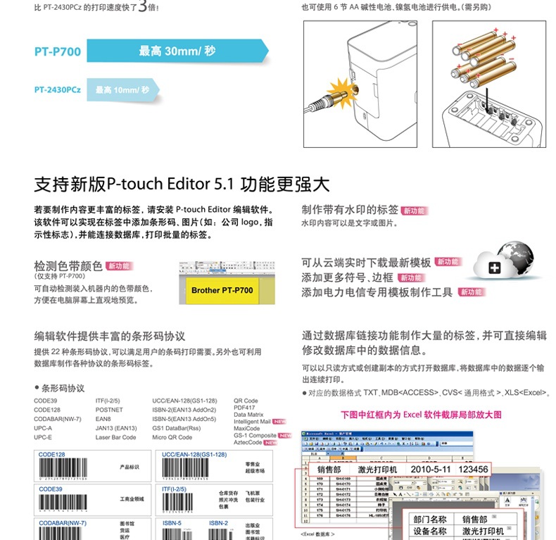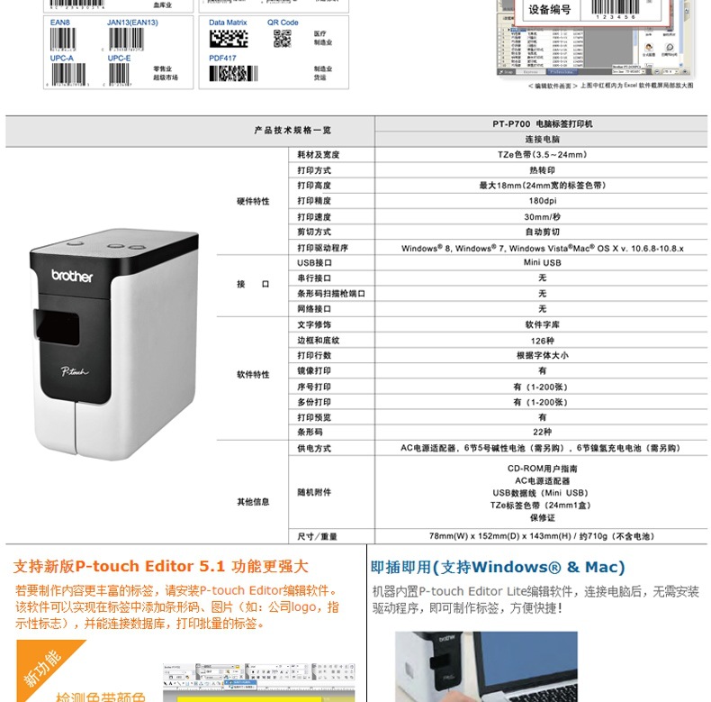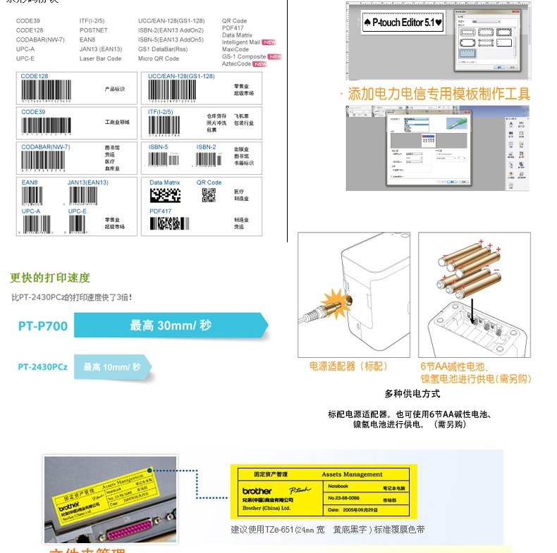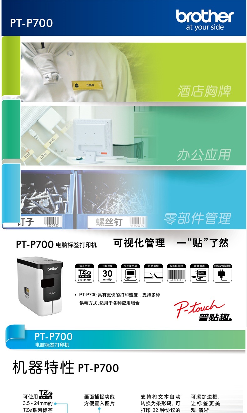 브라더 PT-P700 고정자산 라벨 프린터 배지 명찰 케이블 통신 전력 공학 네트워크 케이블 천