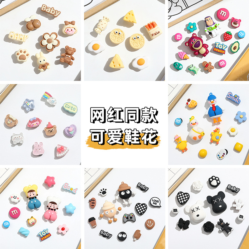 Croc 신발 액세서리 버클 diy 분리형 신발 꽃 신발 버클 장식 만화 귀여운 샌들 신발 액세서리 도매 봄과 여름스토어 가기