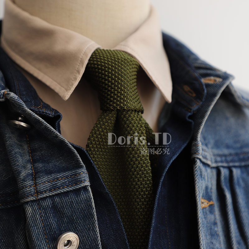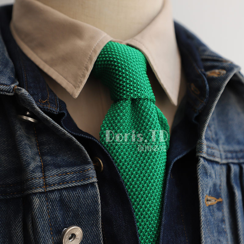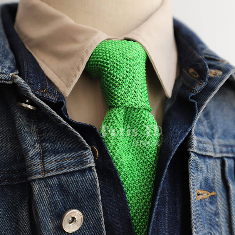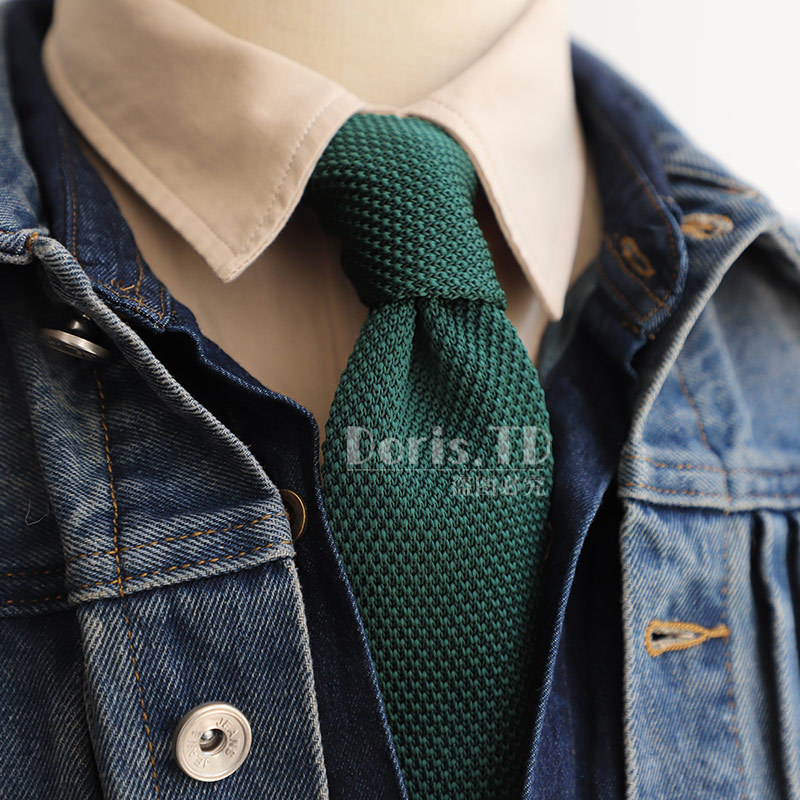 새로운 공장 직접 판매 복고풍 녹색 니트 넥타이 남성 캐주얼 좁은 6CM 울 한국식 단색스토어 가기