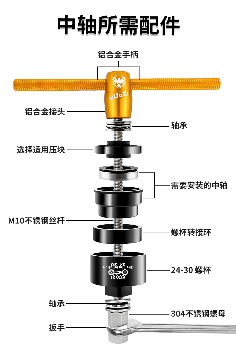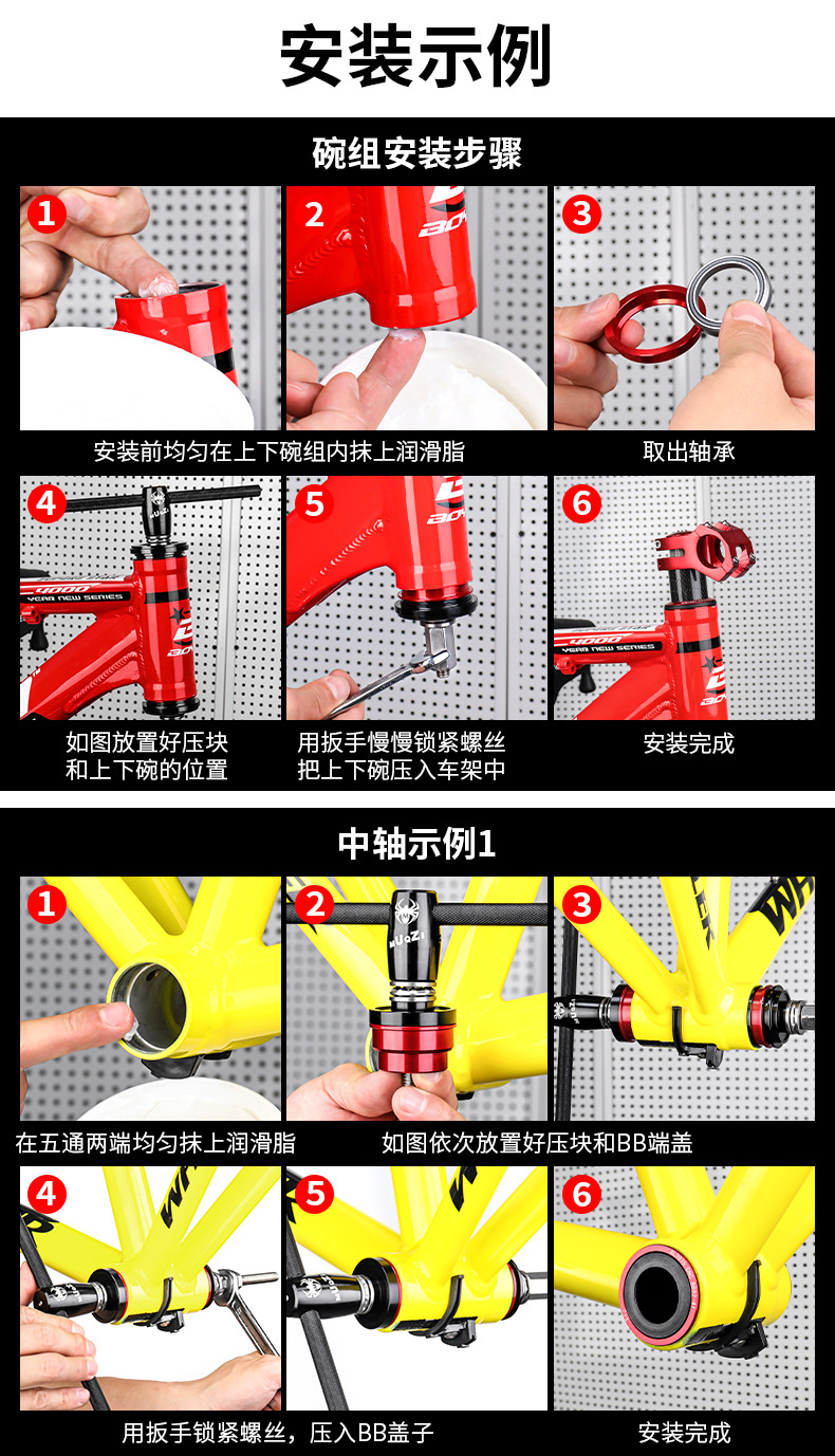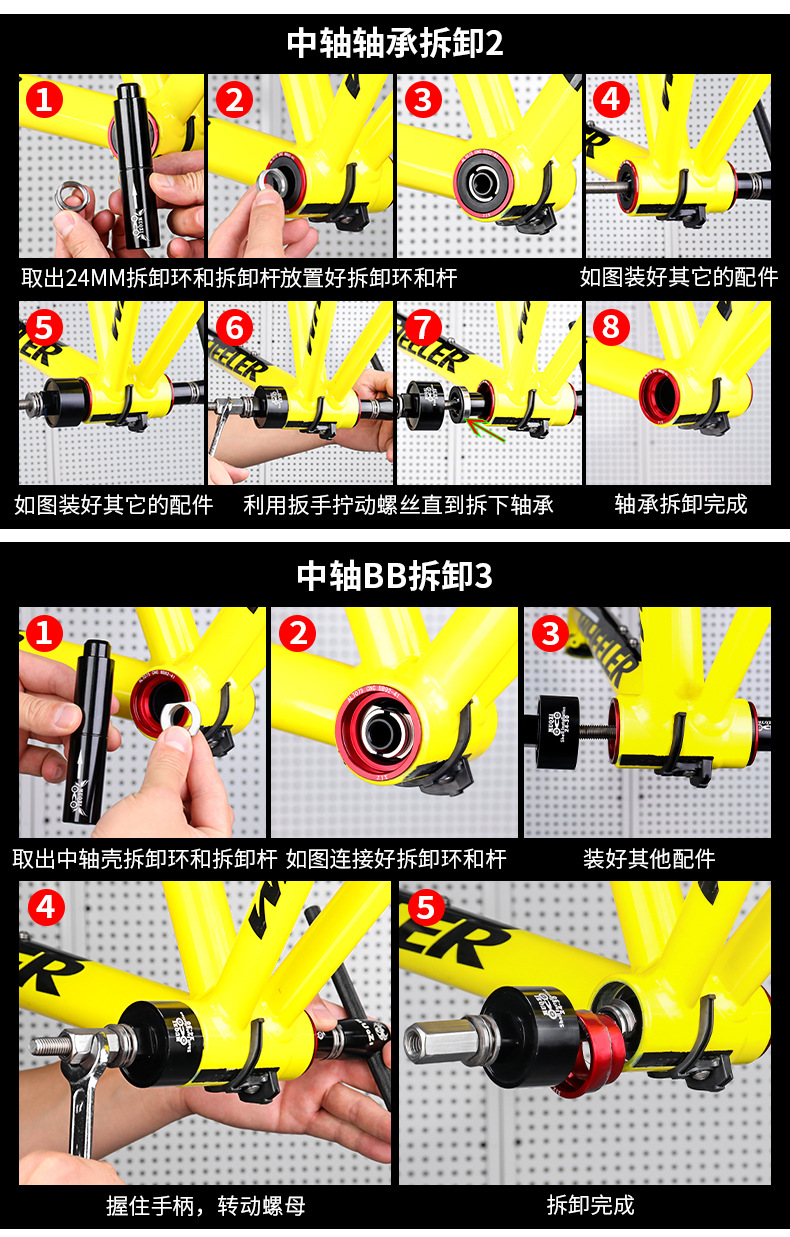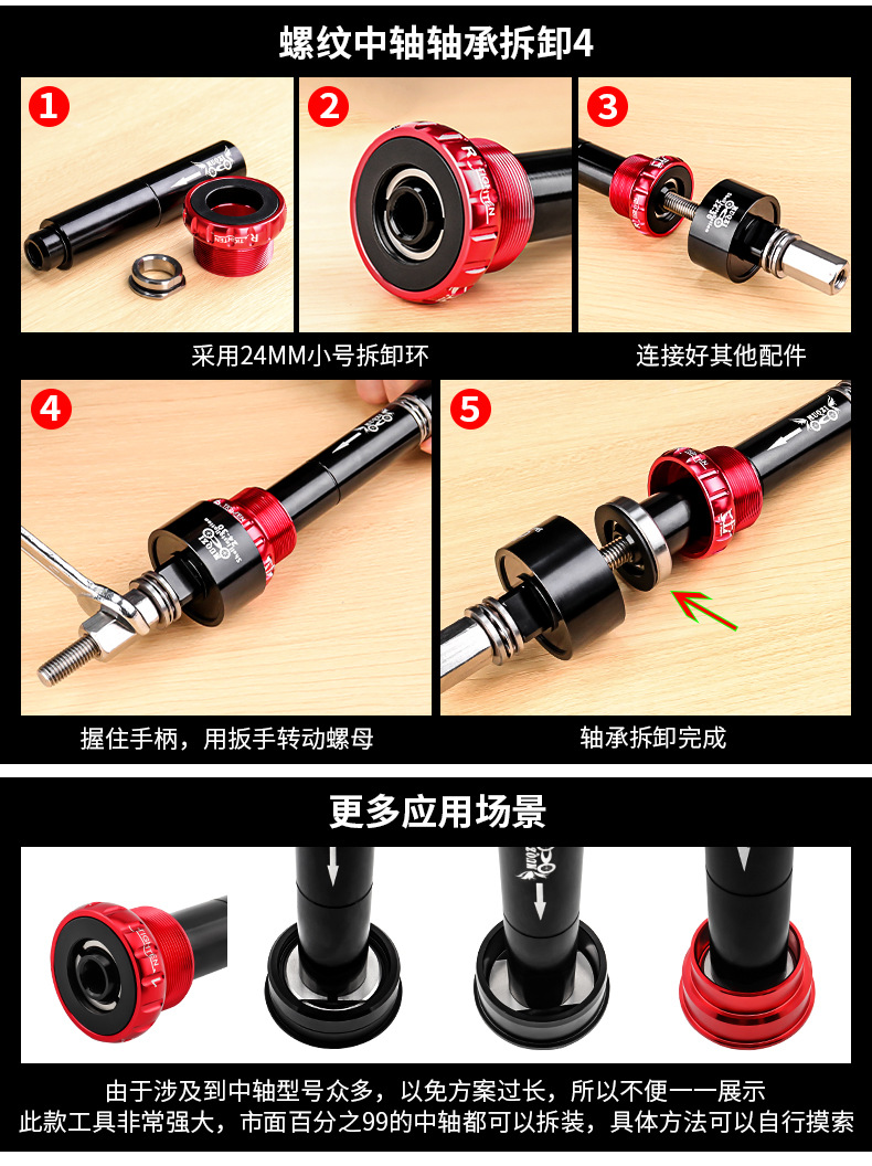 可以拆几乎所有普通中空螺纹中轴轴承和BB86,BB30,BB91,BB30转24,BB92等压入式中轴内培林的安装和拆卸