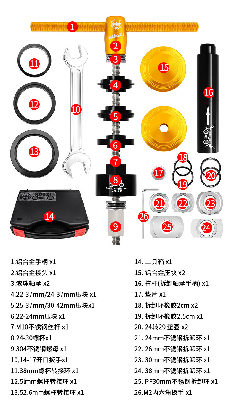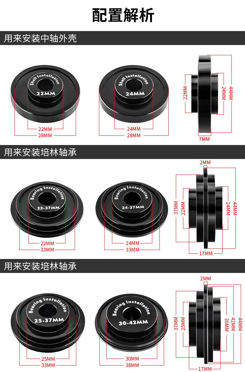 适用多种压入式BB中轴规格,安装与拆卸只要这一组即满足所有需要