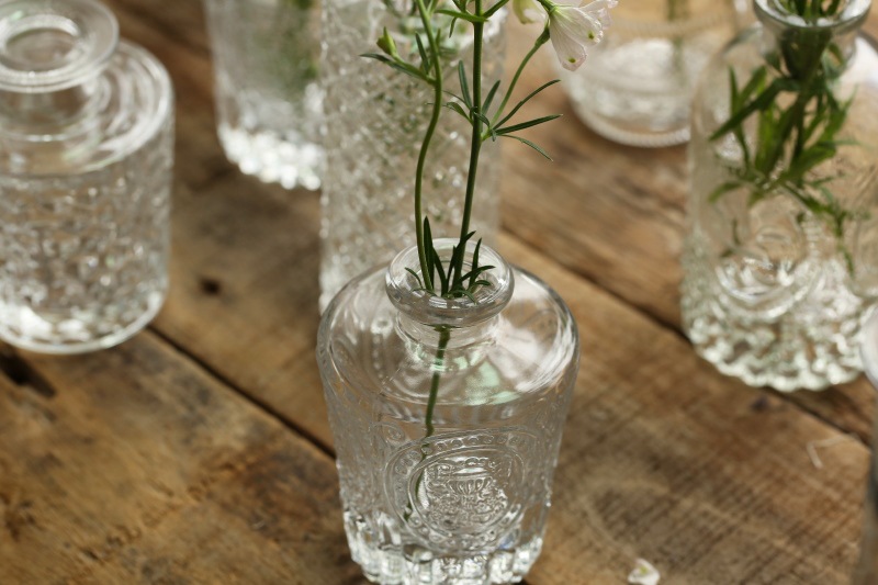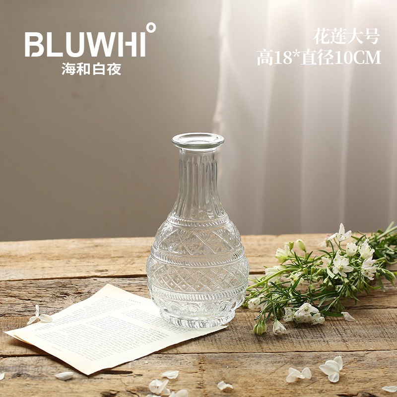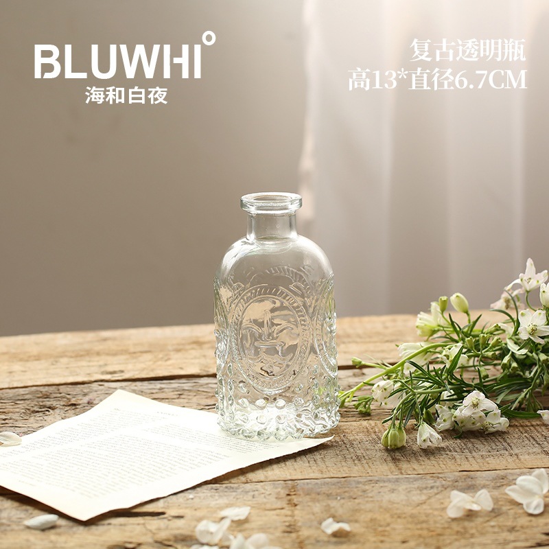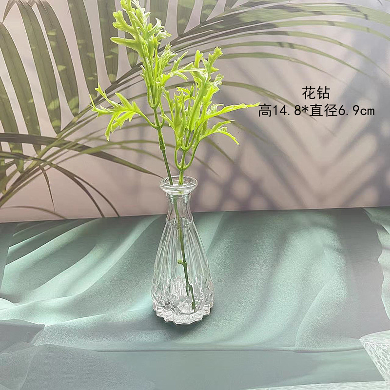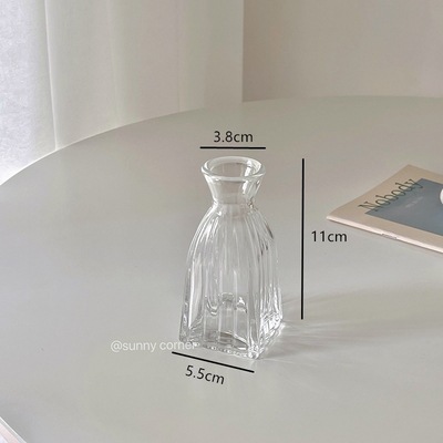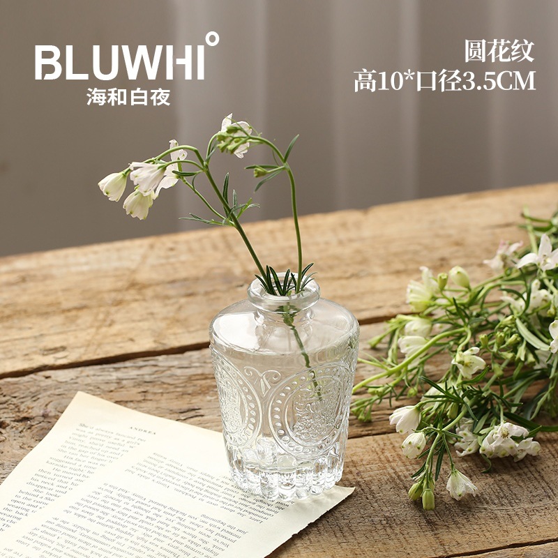 레트로 라이트 럭셔리 미니 유리 꽃병, 투명하고 고급스러운 거실 인테리어, 인스 스타일 양각 꽃꽂이 소형 꽃병 장식품스토어 가기