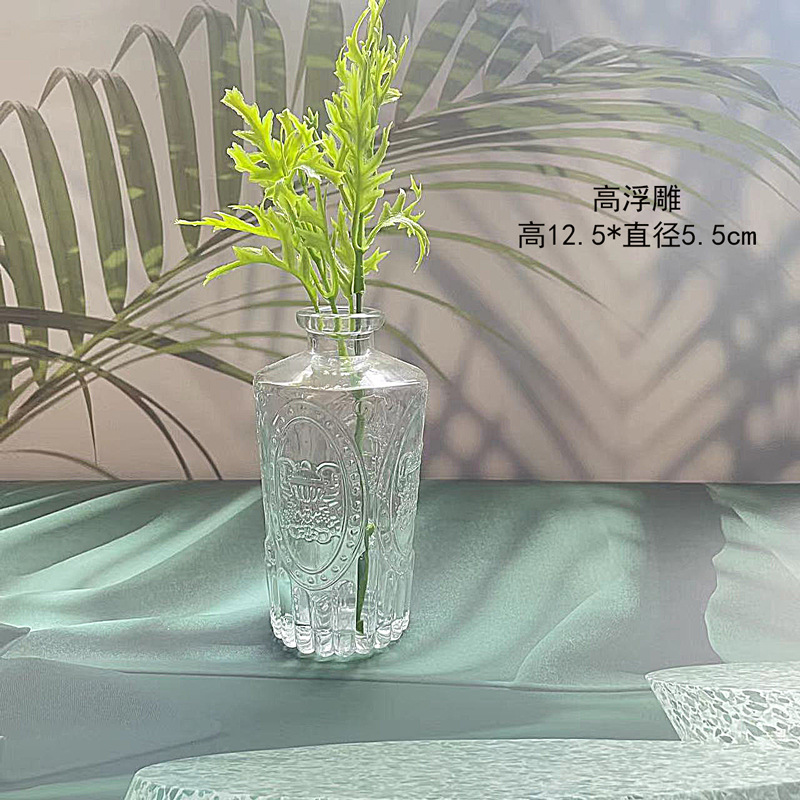 레트로 라이트 럭셔리 미니 유리 꽃병, 투명하고 고급스러운 거실 인테리어, 인스 스타일 양각 꽃꽂이 소형 꽃병 장식품