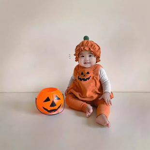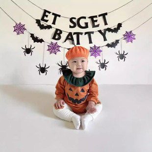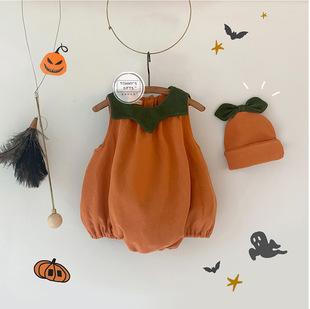 ins万圣节宝宝哈衣南瓜造型婴幼儿连体衣秋季新款外出爬服套装