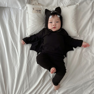ins款万圣节主题系列蝙蝠造型套装2024秋季款儿童长袖三件套送帽
