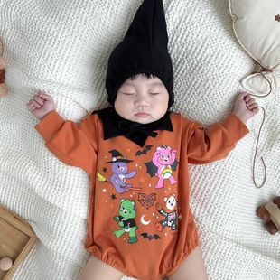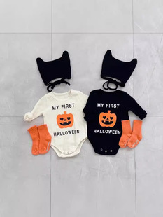 24秋季韩版婴儿连体衣套装ins南瓜印花宝宝哈衣万圣节主题包屁衣