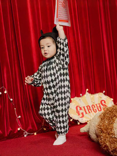 24秋韩版宝宝哈衣ins马戏团小丑造型婴儿连体衣万圣节造型包屁衣