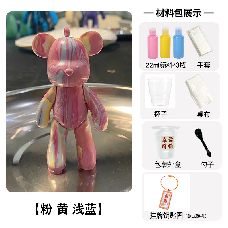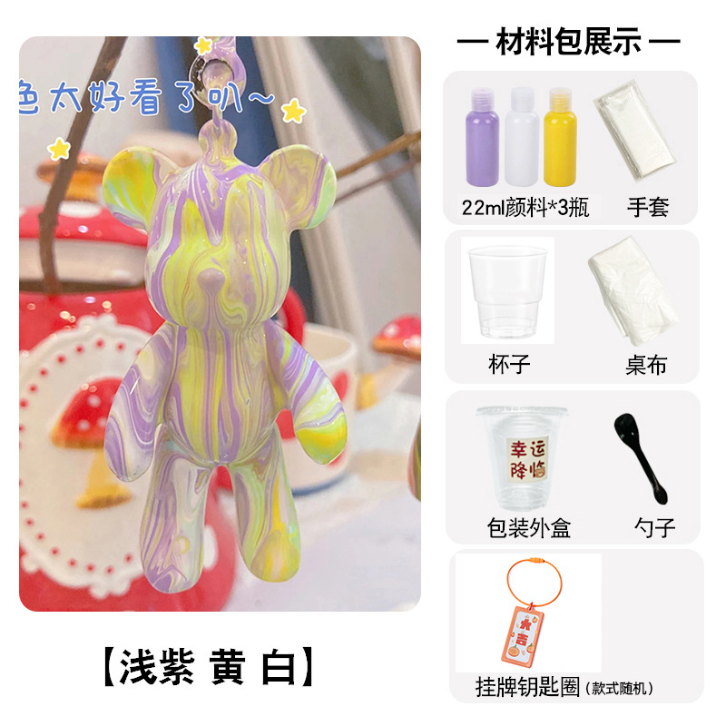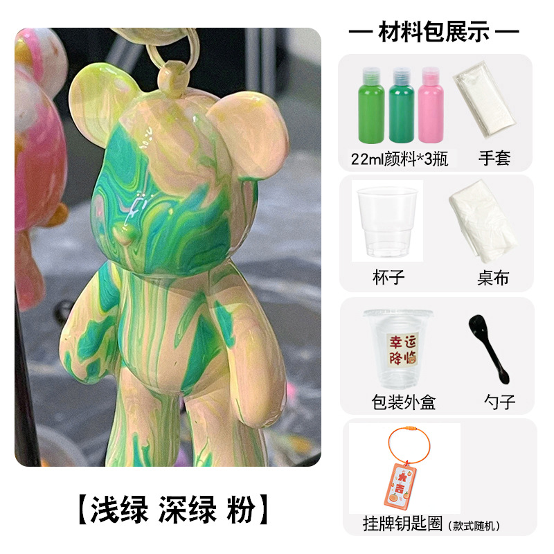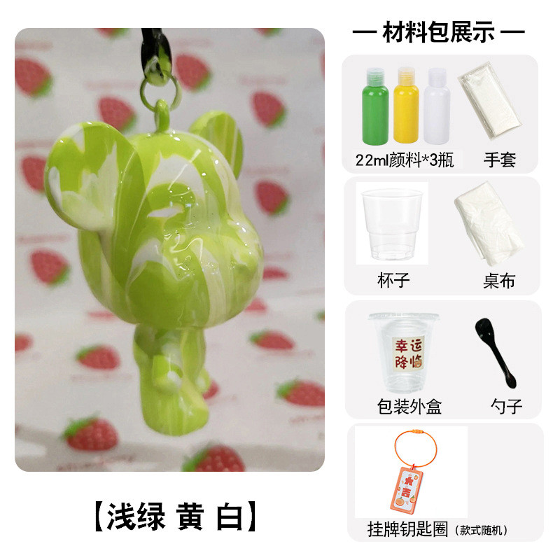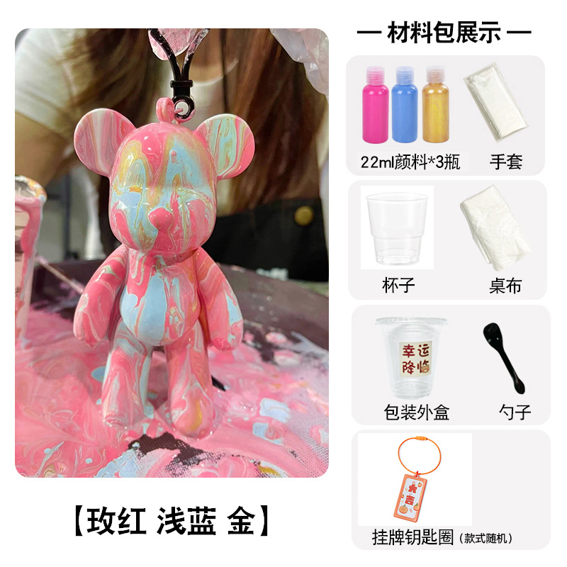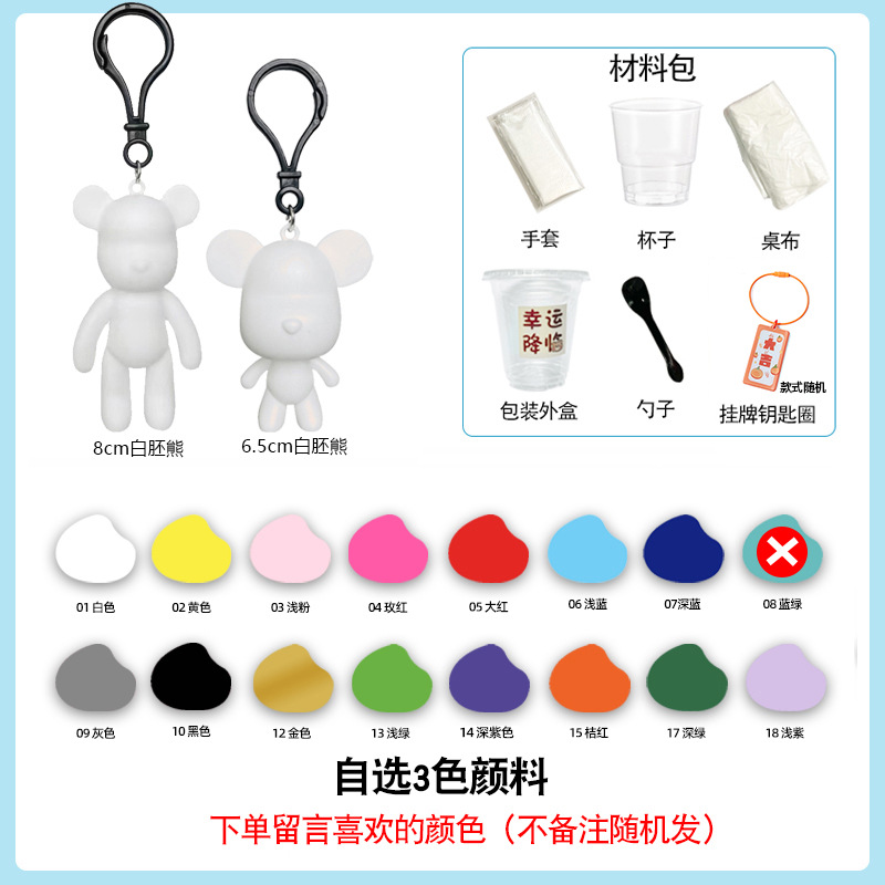 手工tips:小熊收到时表面可能会有油脂不上色,淋颜料前先用湿巾和干纸巾将小熊擦拭干净后再淋哦~