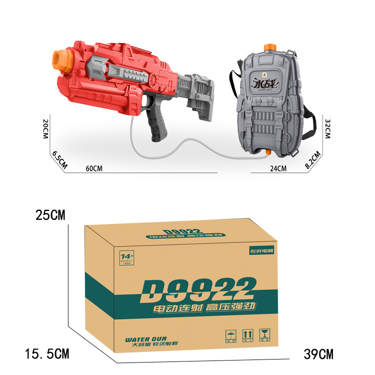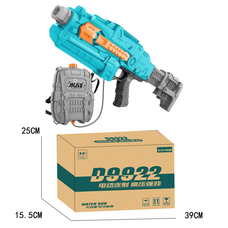D9922 충전식 전기 버스트 백팩 물총 크로스 보더 핫 세일 장거리 대용량 물총 야외 스포츠스토어 가기