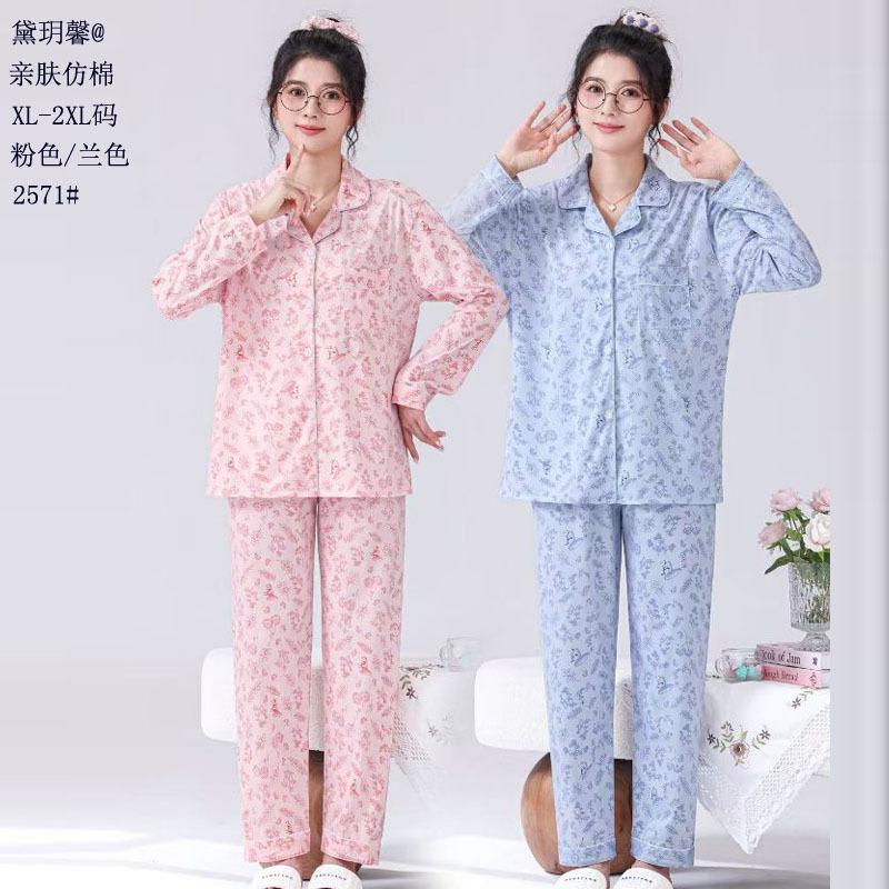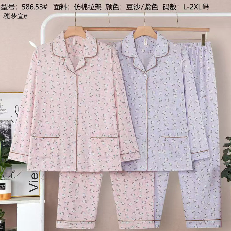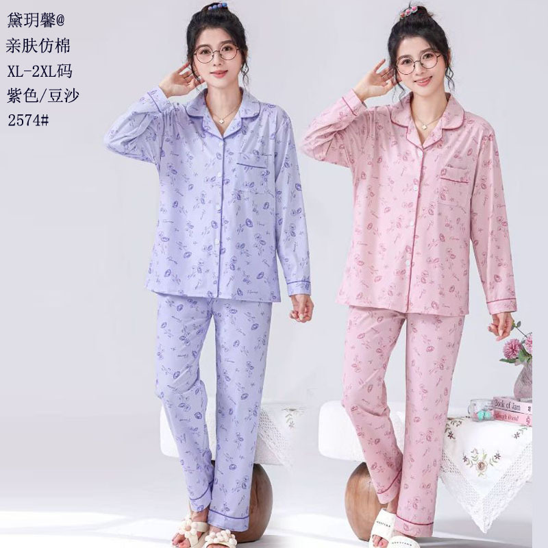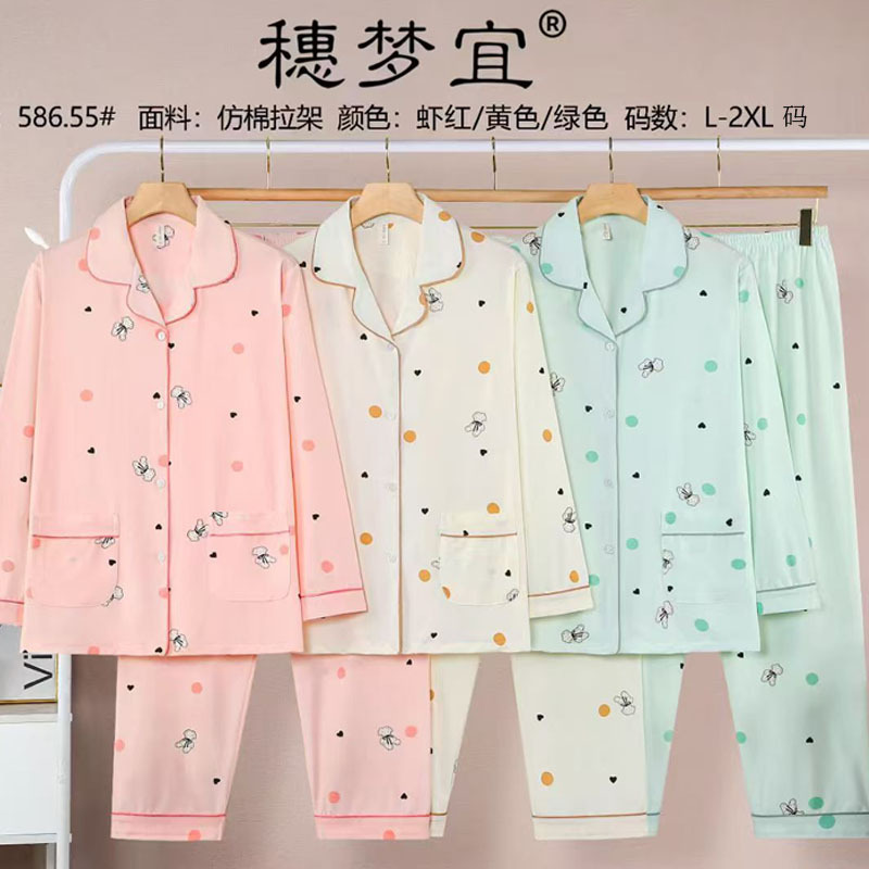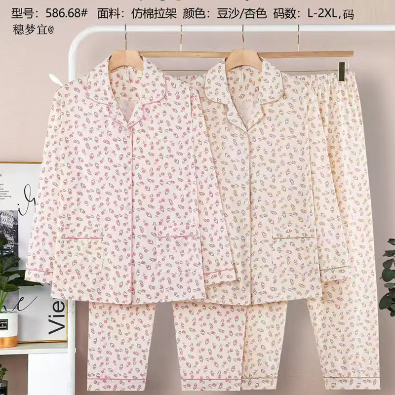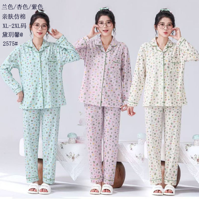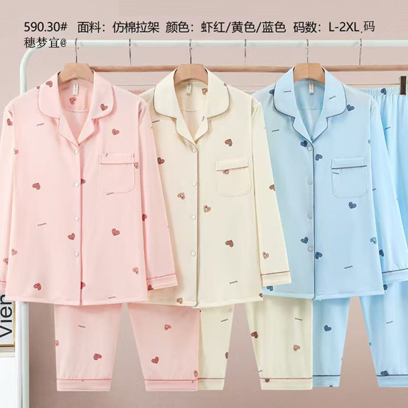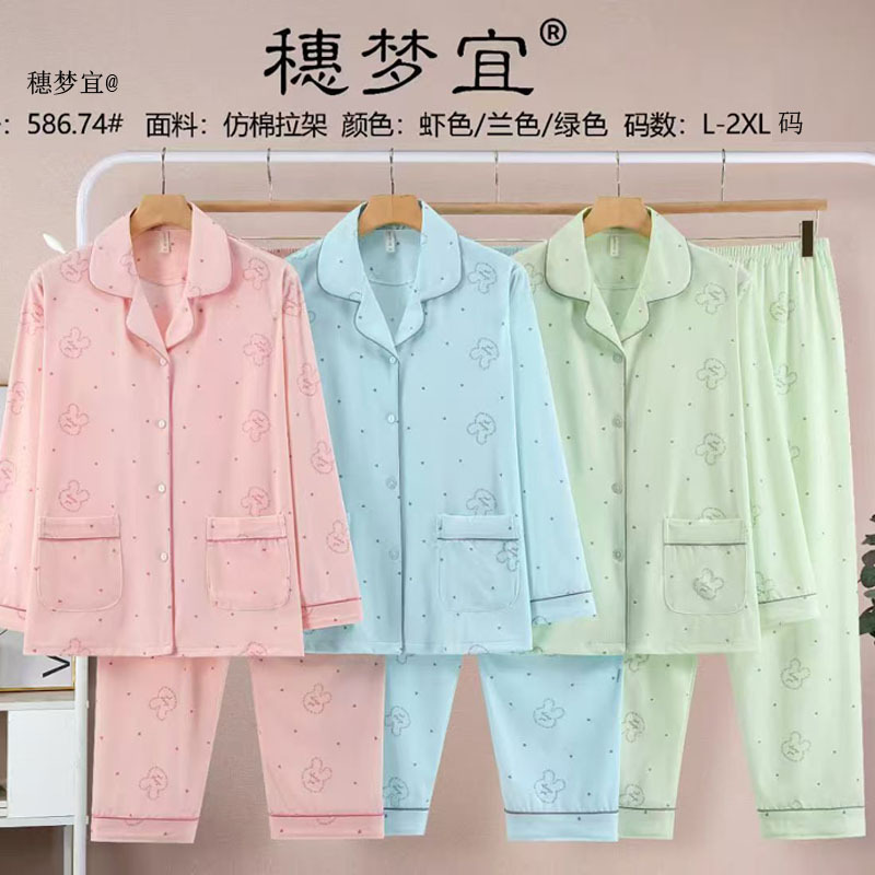 피부 친화적인 모조 면 만쉬안 잠옷 더블 롱 2025 새로운 슈트 여성 Xinmu 카디건 긴팔 바지 홈웨어스토어 가기