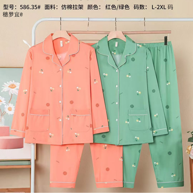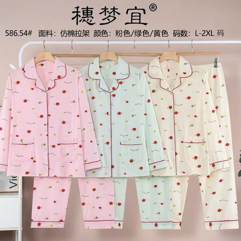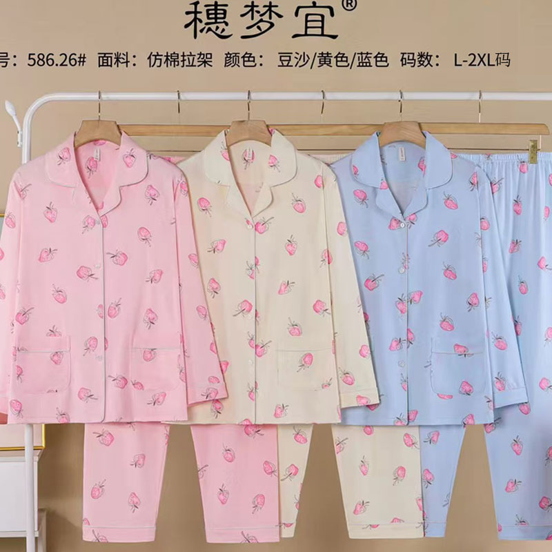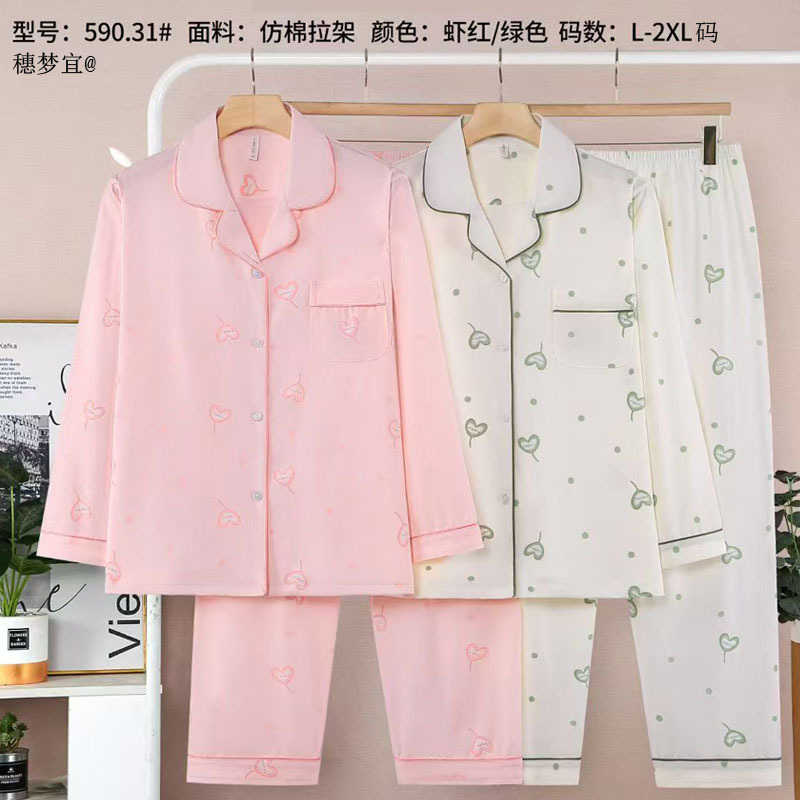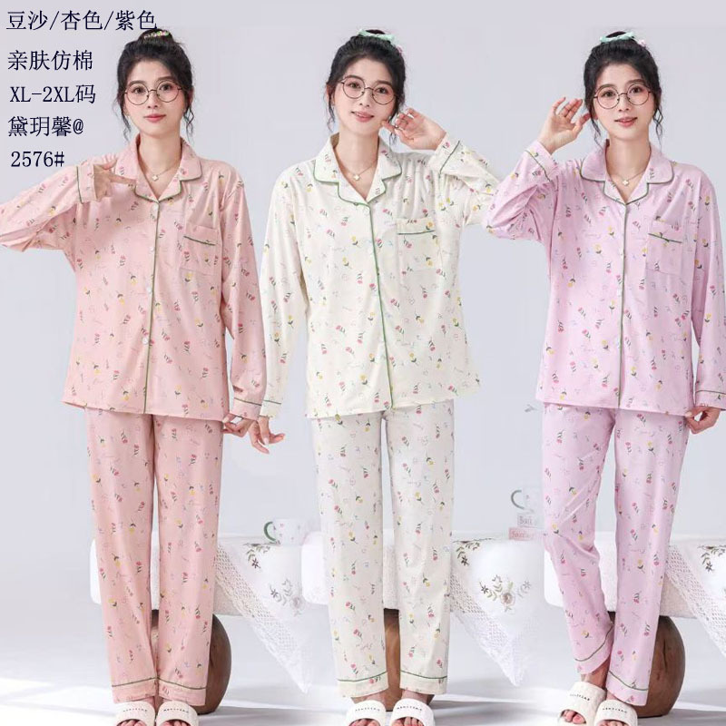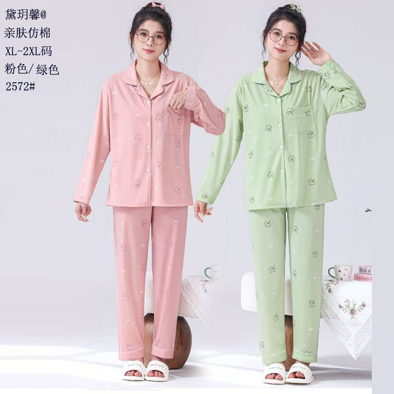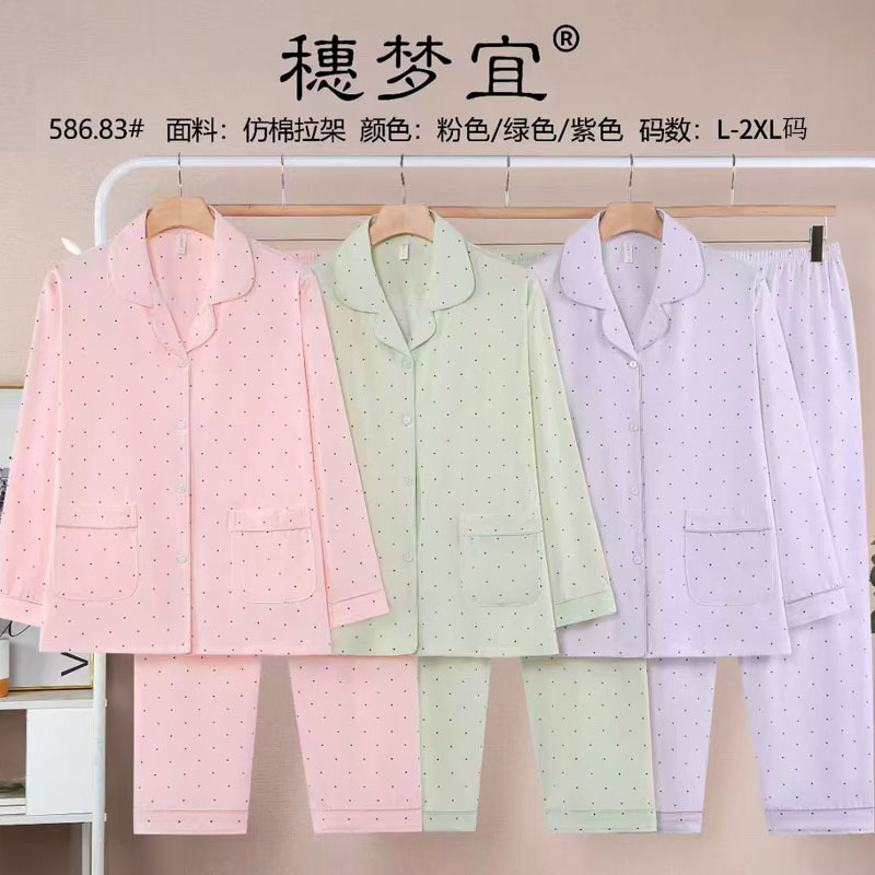 피부 친화적인 모조 면 만쉬안 잠옷 더블 롱 2025 새로운 슈트 여성 Xinmu 카디건 긴팔 바지 홈웨어스토어 가기