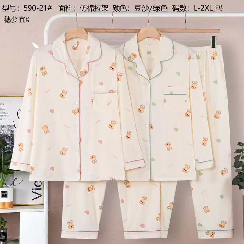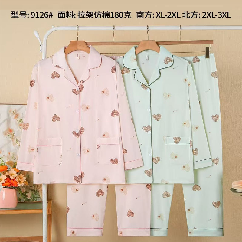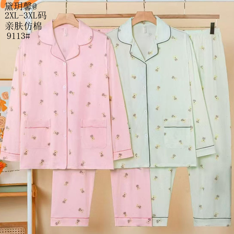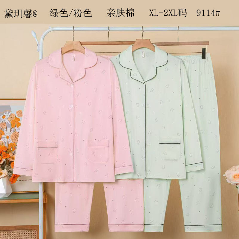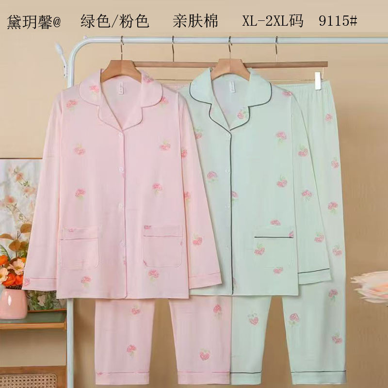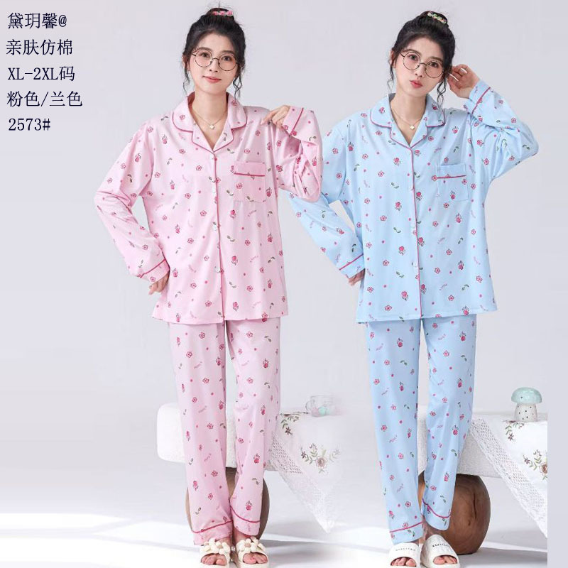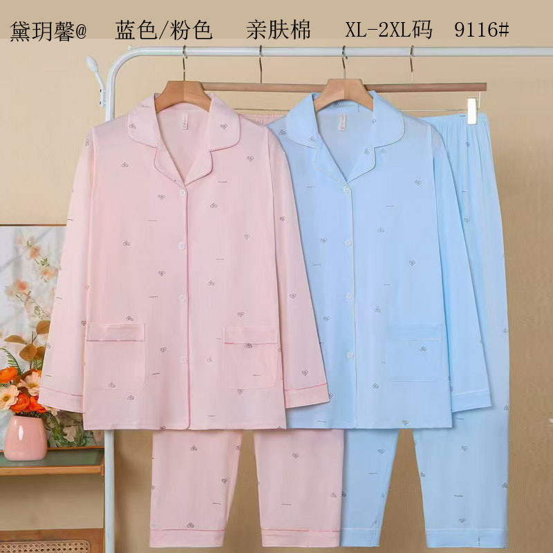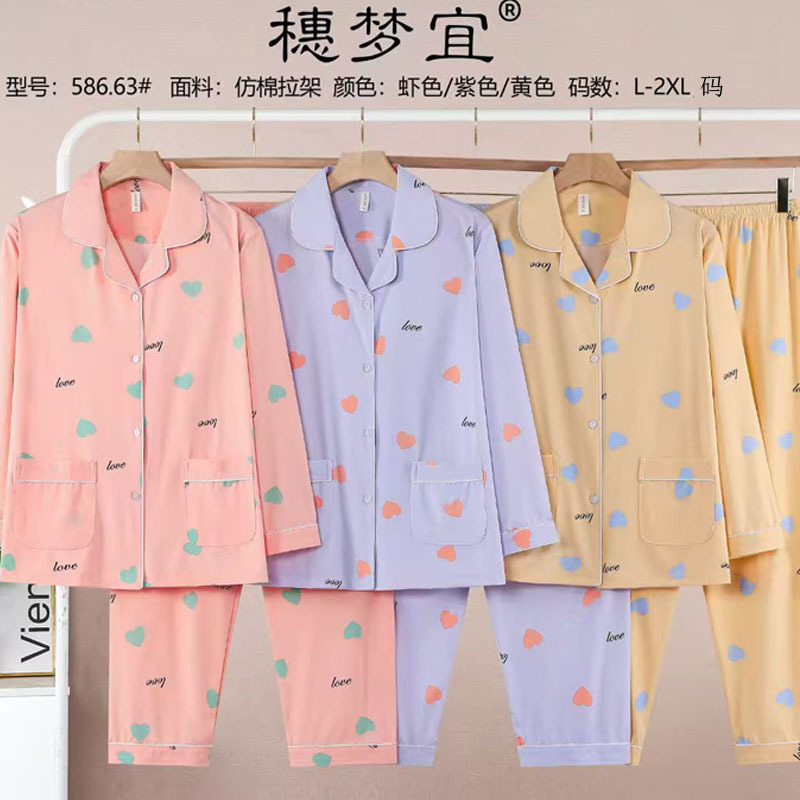 피부 친화적인 모조 면 만쉬안 잠옷 더블 롱 2025 새로운 슈트 여성 Xinmu 카디건 긴팔 바지 홈웨어스토어 가기