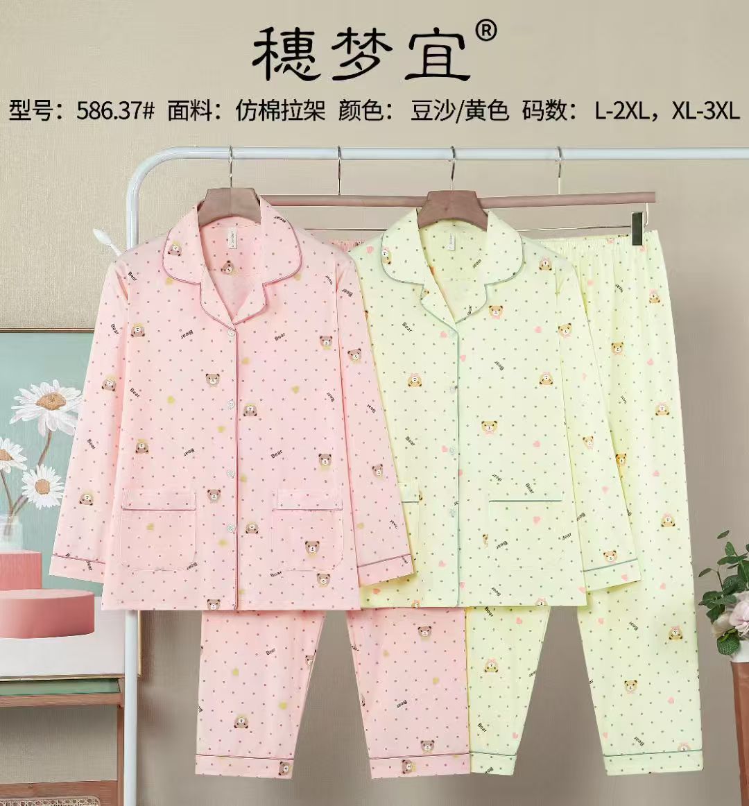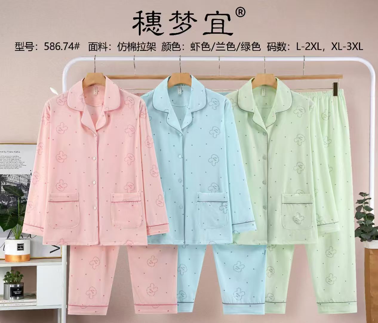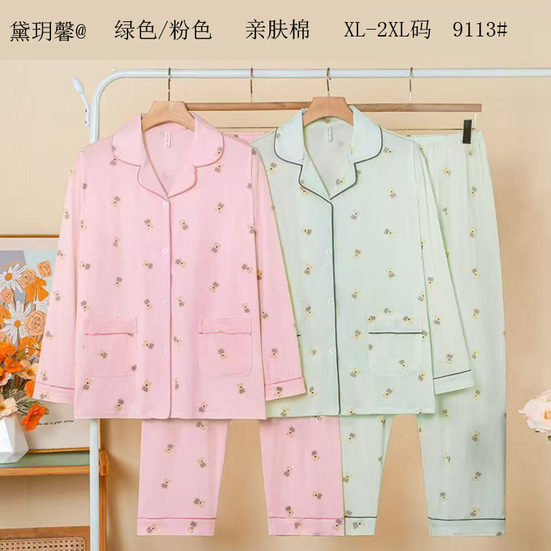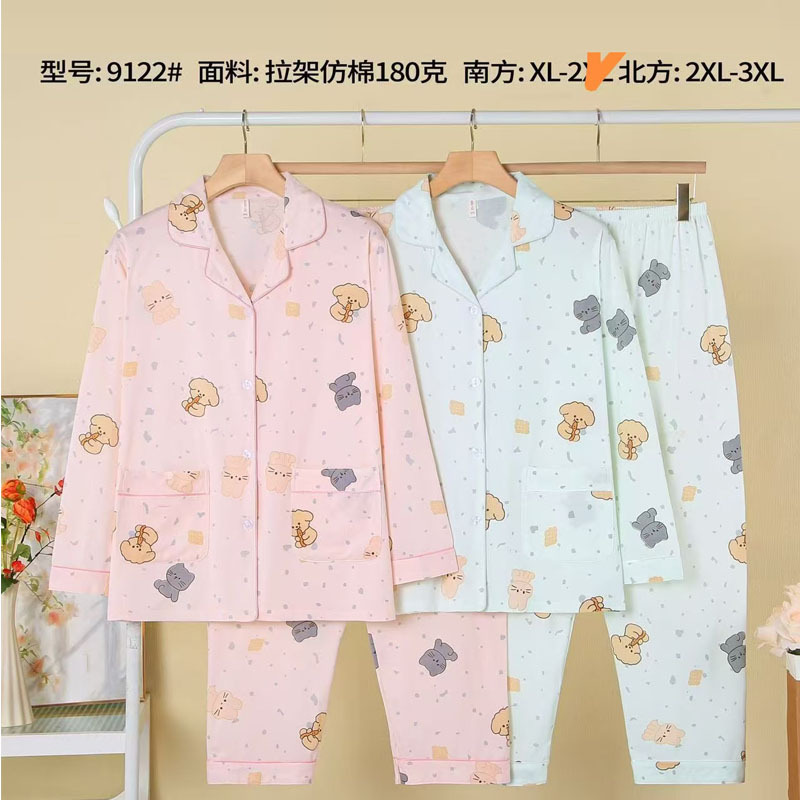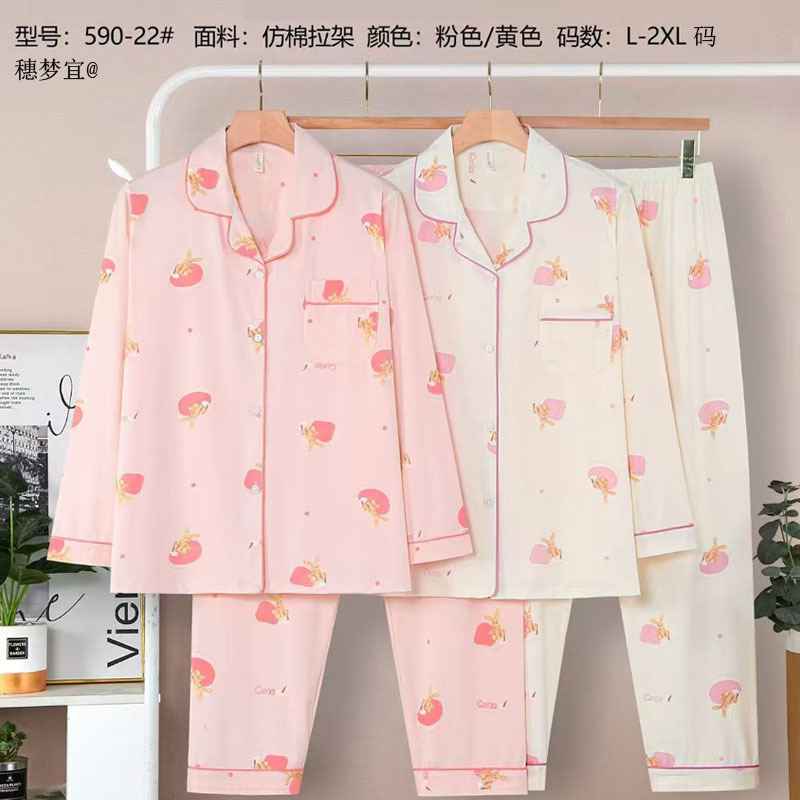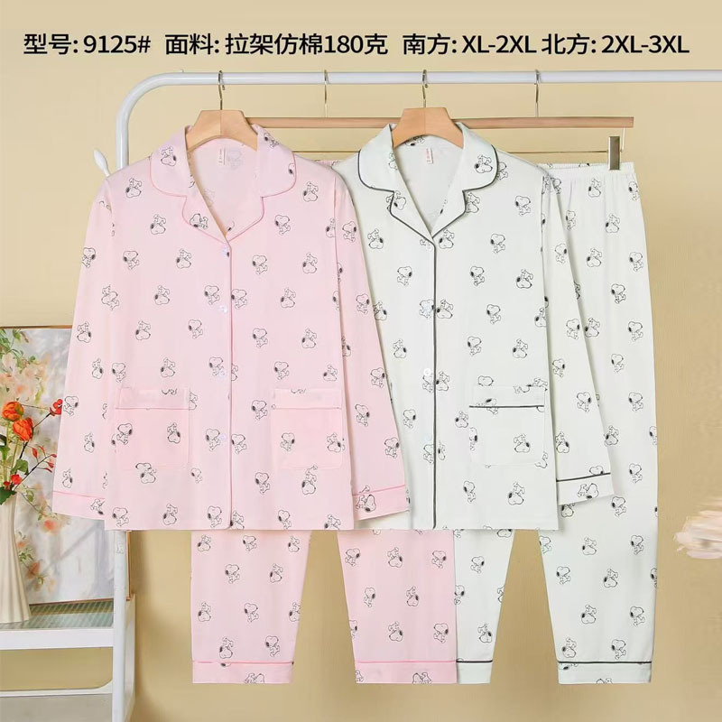 피부 친화적인 모조 면 만쉬안 잠옷 더블 롱 2025 새로운 슈트 여성 Xinmu 카디건 긴팔 바지 홈웨어스토어 가기