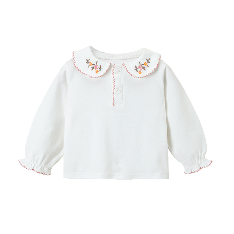 달콤한 아기 소녀 가을 옷 아기 인형 칼라 긴팔 티셔츠 탑 화이트 바닥 셔츠 서양식 어린이 올 매치