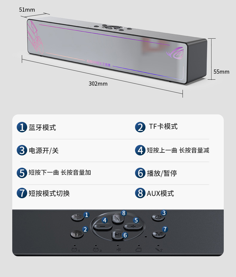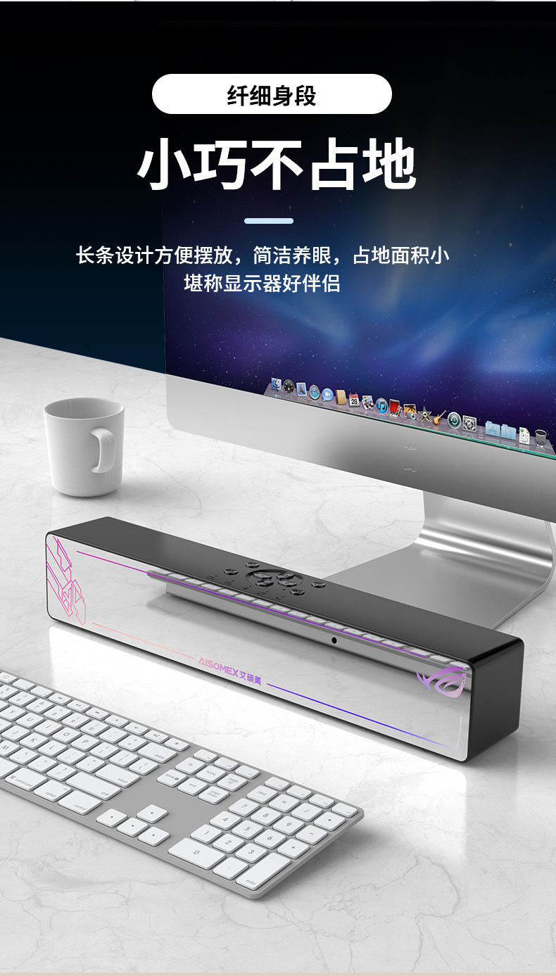 Aishuomei B133L 미러 무선 블루투스 스피커 데스크탑 컴퓨터 오디오 헤비 서브 우퍼 롱 데스크탑 스피커스토어 가기