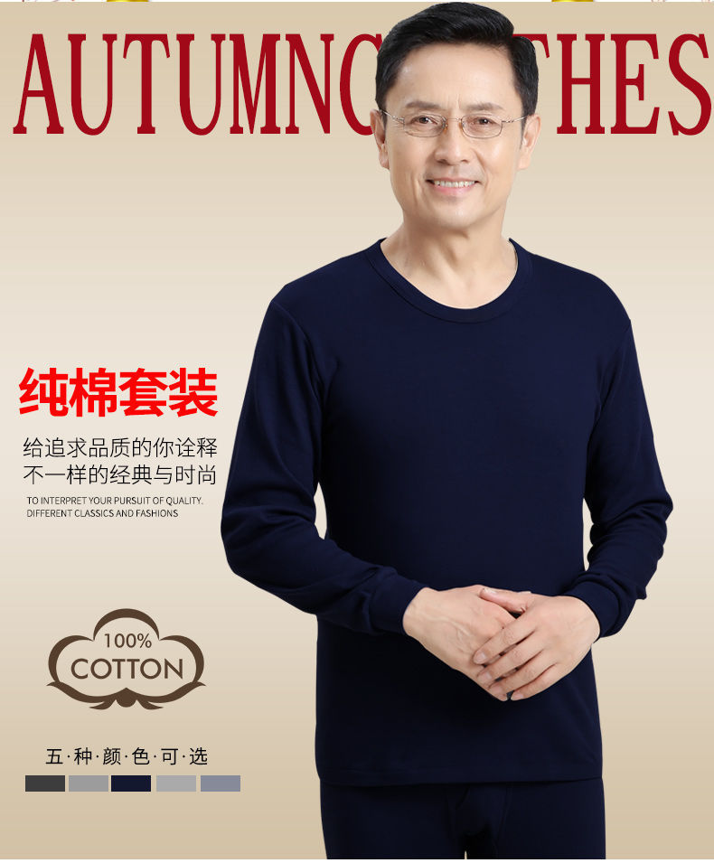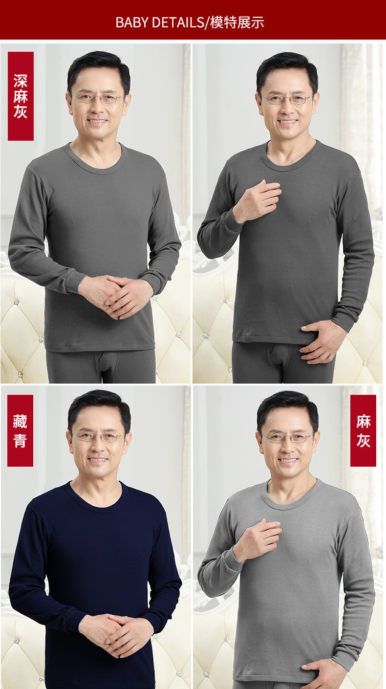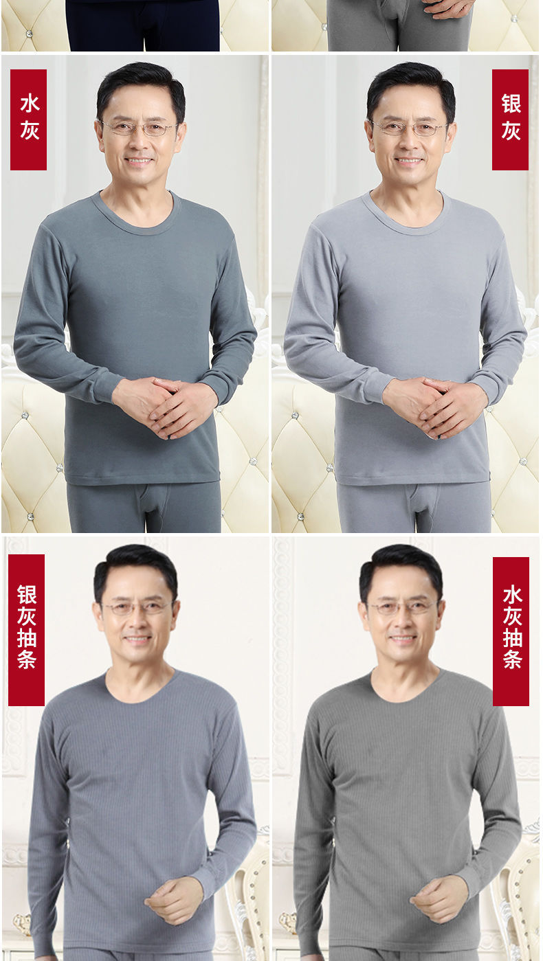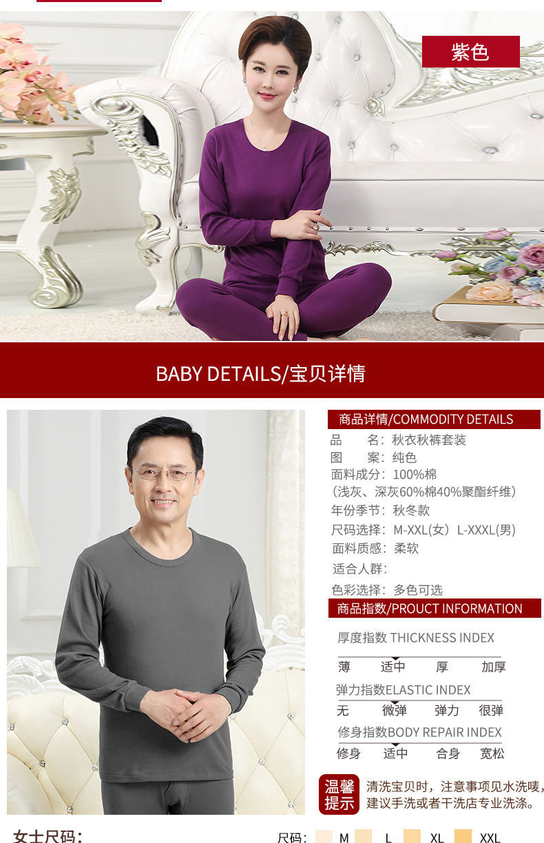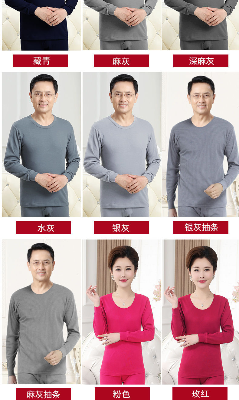 남성용 가을옷 얇은 보온 속옷 여성용 순면 라운드넥 면 스웨터 세트스토어 가기