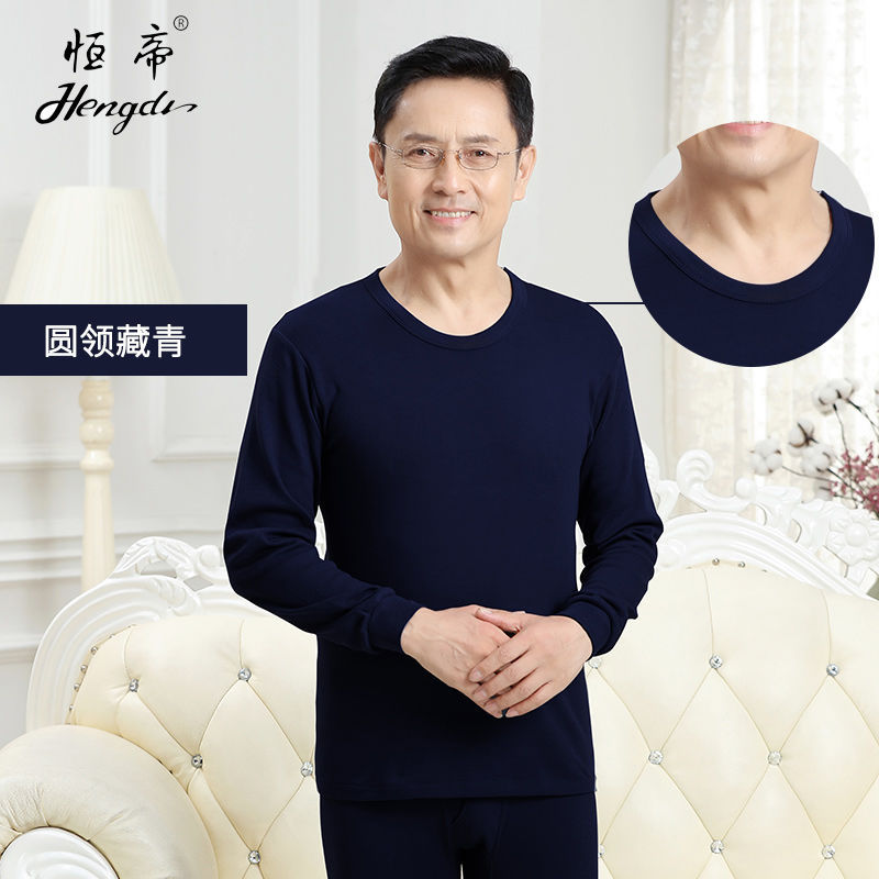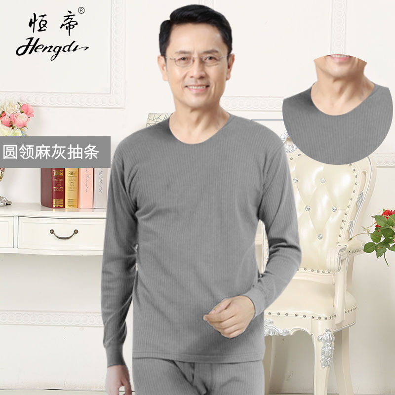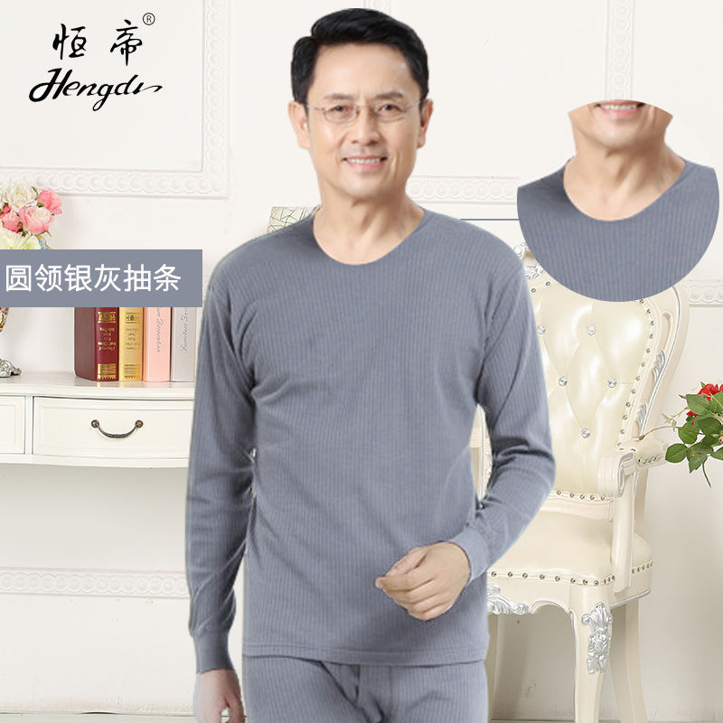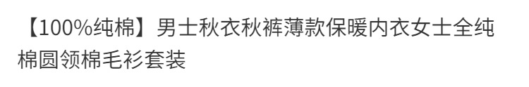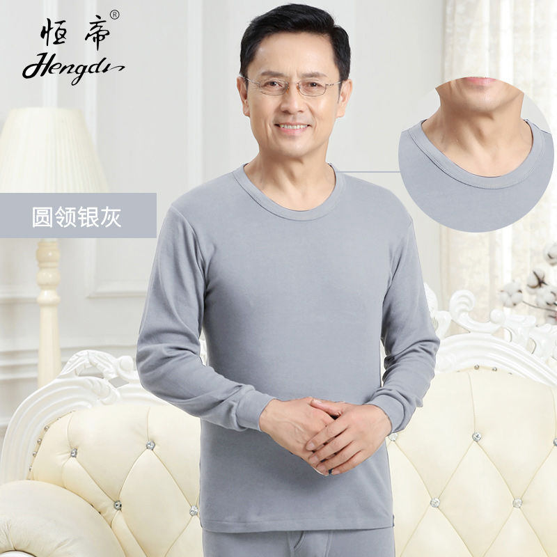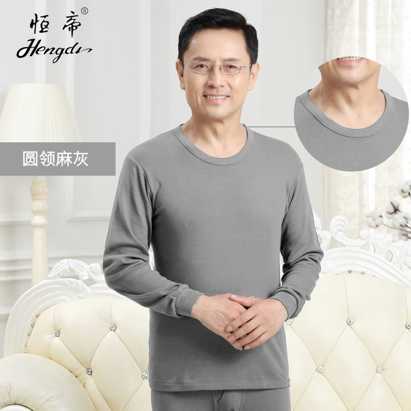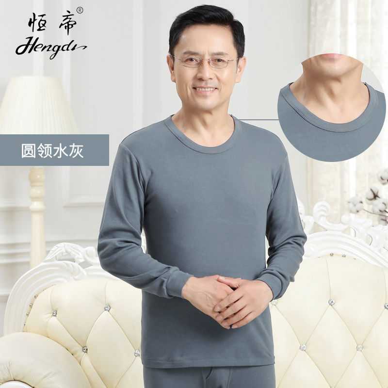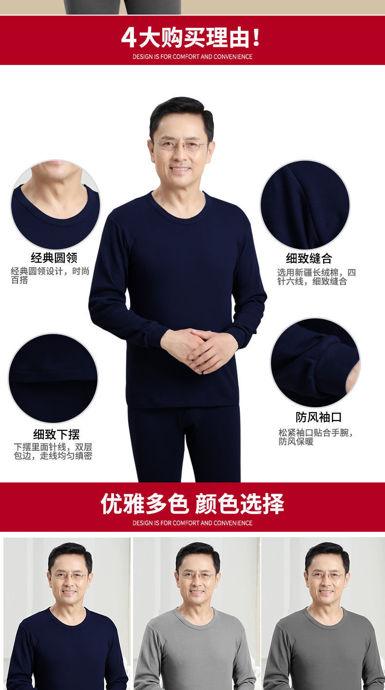 남성용 가을옷 얇은 보온 속옷 여성용 순면 라운드넥 면 스웨터 세트스토어 가기