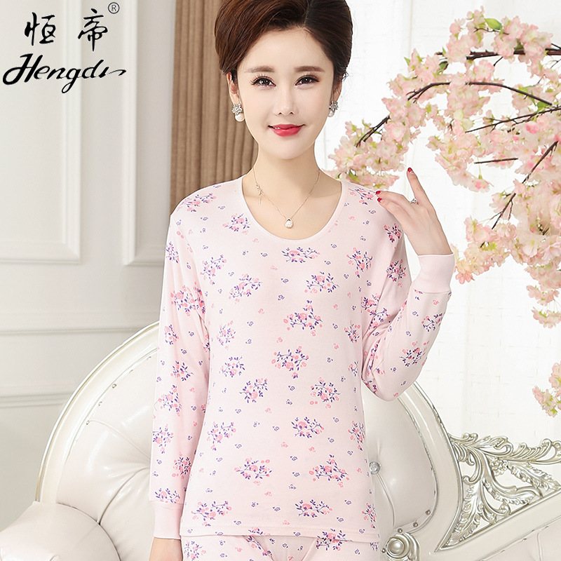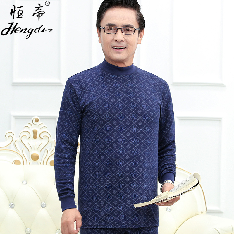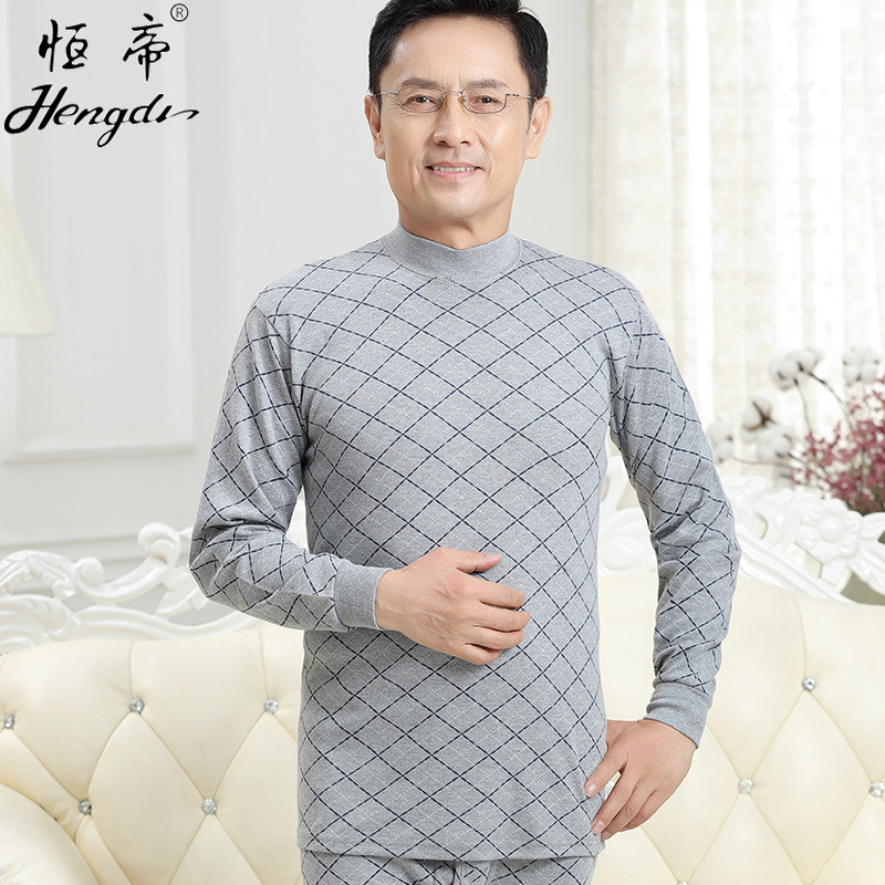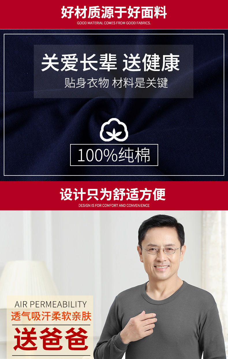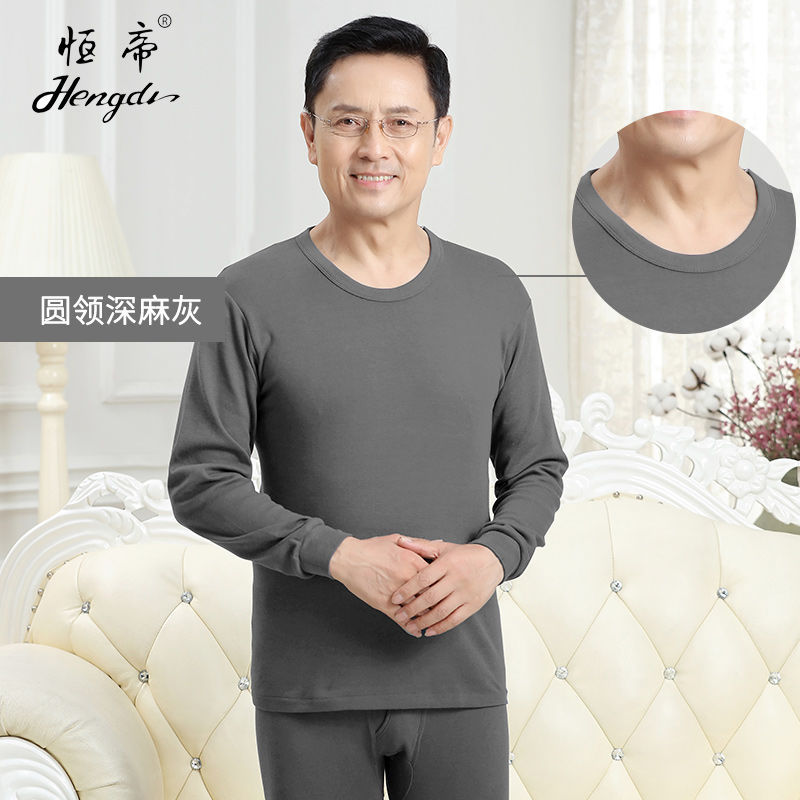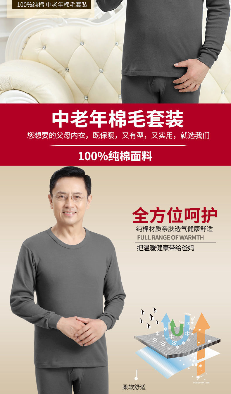 남성용 가을옷 얇은 보온 속옷 여성용 순면 라운드넥 면 스웨터 세트스토어 가기