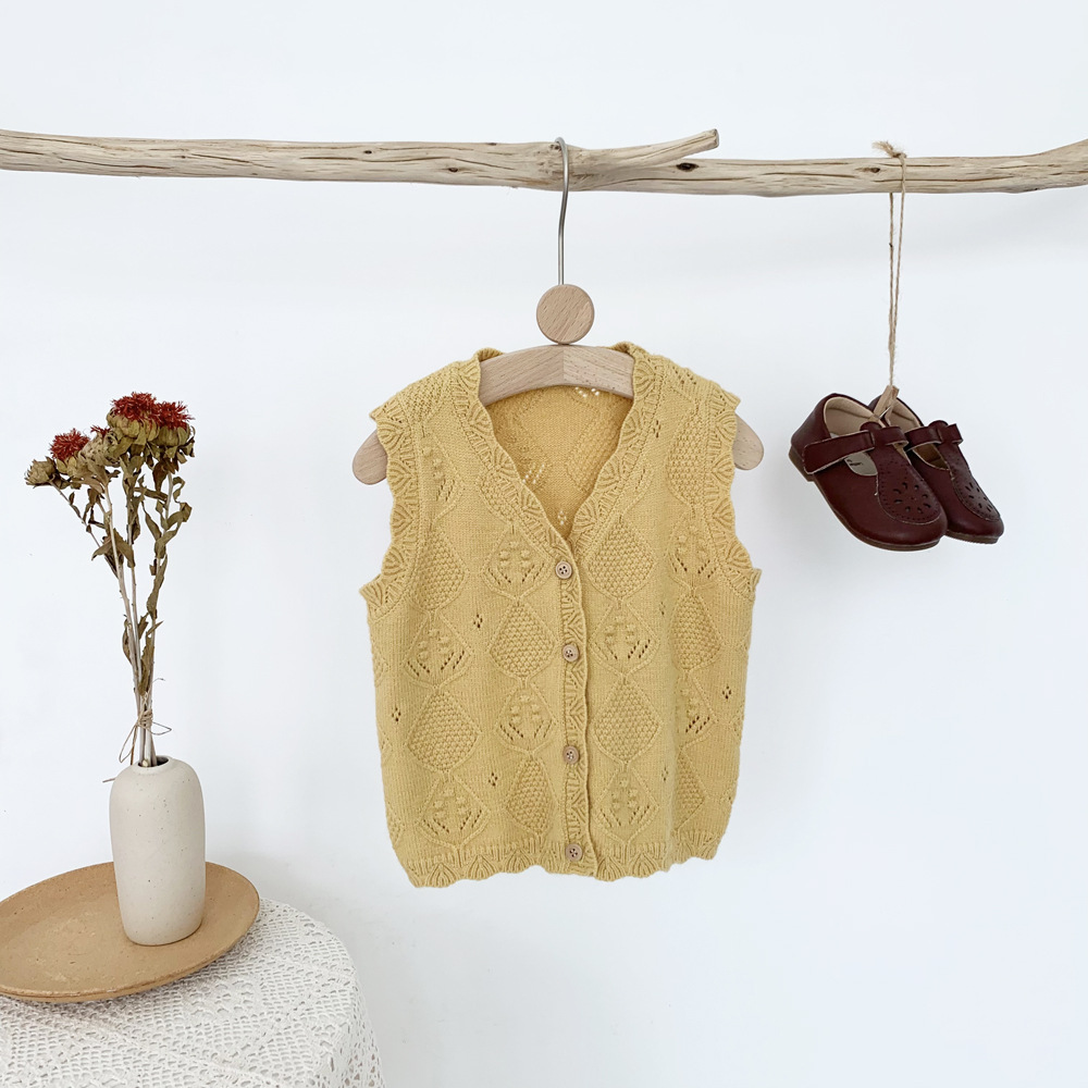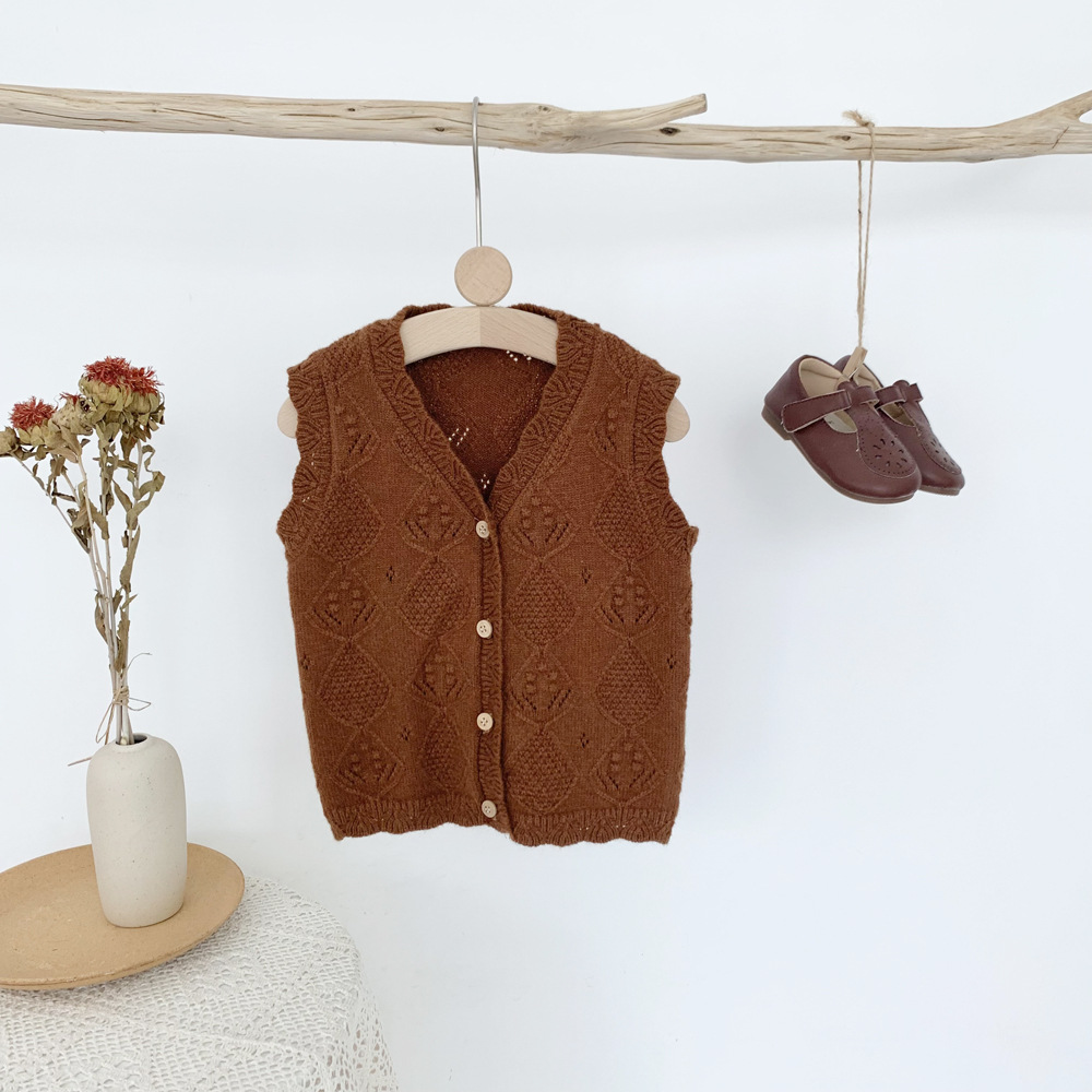 Virgilkids 새로운 인 여아 울 조끼 카디건 크로스 보더 여아 외부 조끼스토어 가기