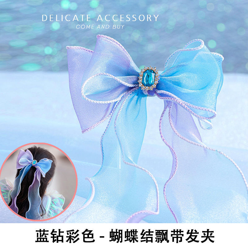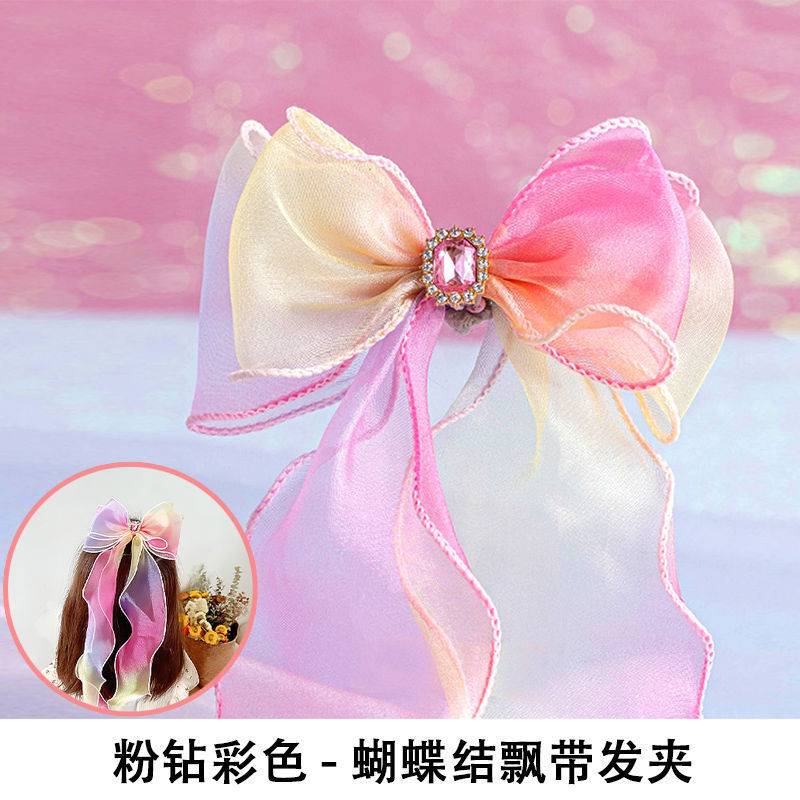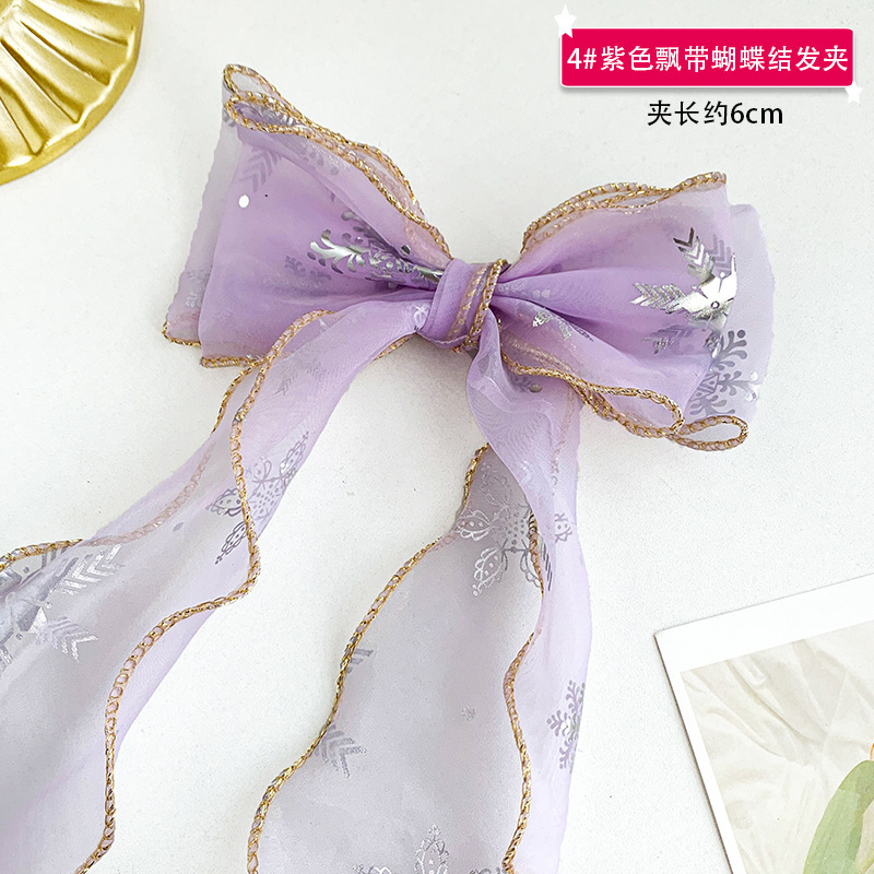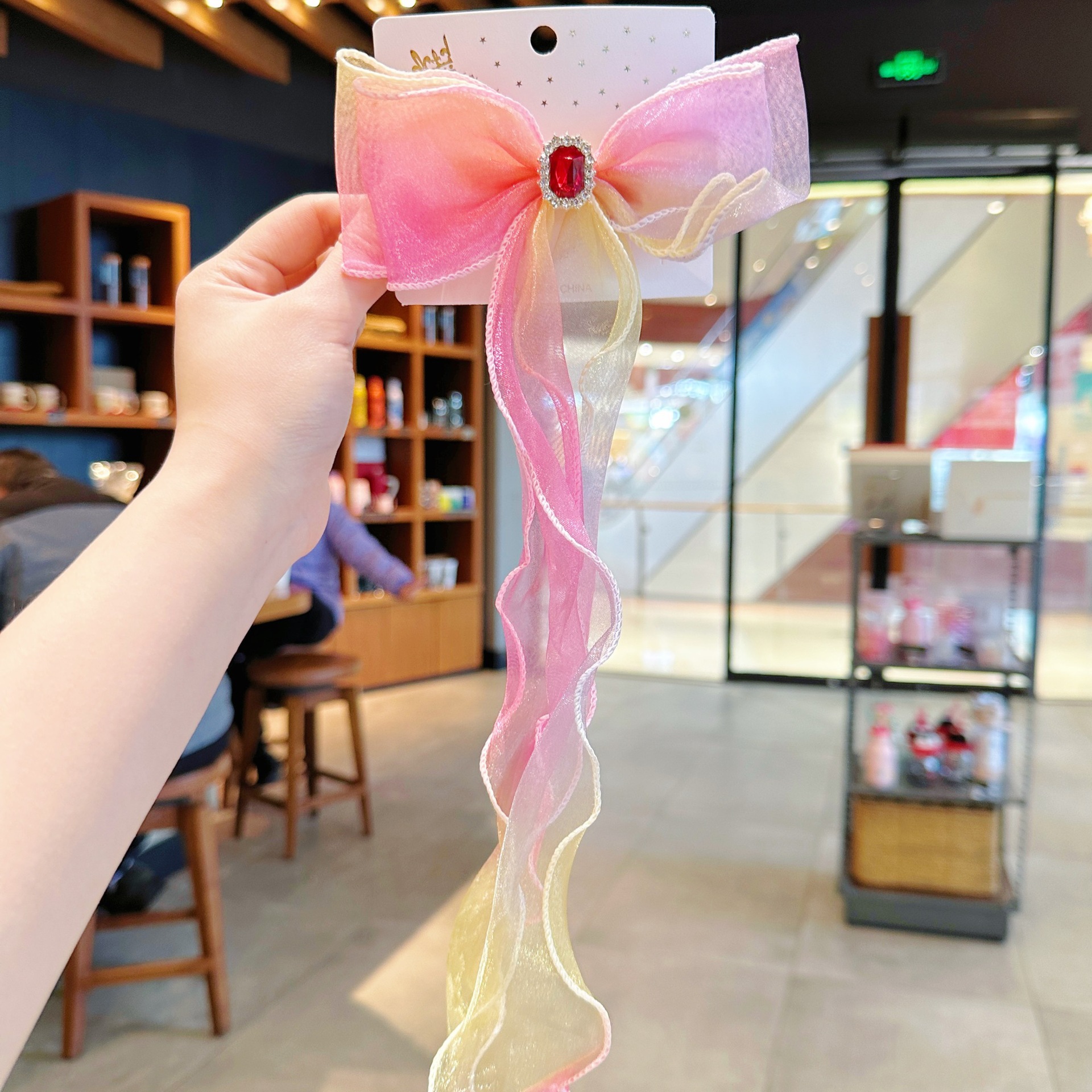 어린이 헤어 밴드 여성 화려한 활 땋은 머리핀 어린 소녀 공주 긴 깃발 머리핀 여름 소녀 헤어 액세서리