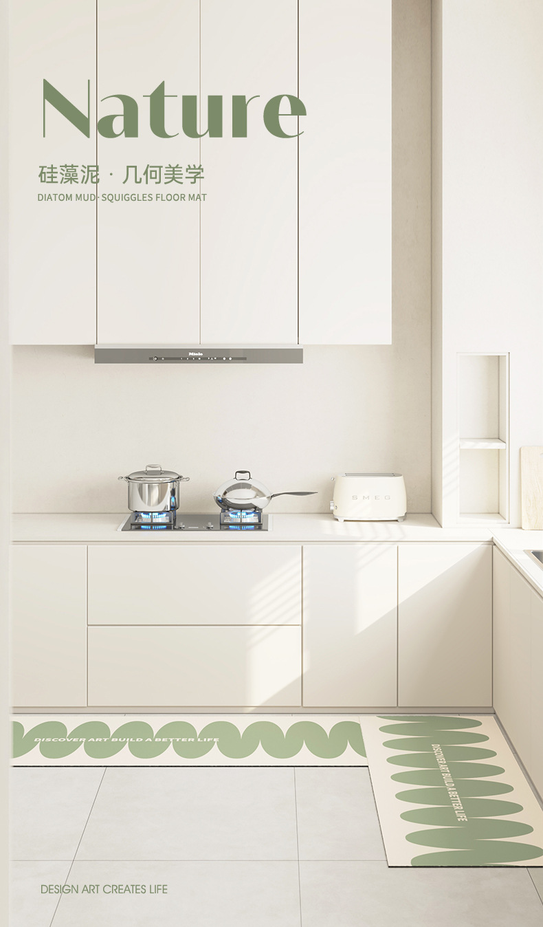북유럽 가벼운 고급 작은 신선한 기하학적 미적 매트 주방 흡수성 바닥 미끄럼 방지 및 기름 방지 규조토 진흙 가정용 발 매트