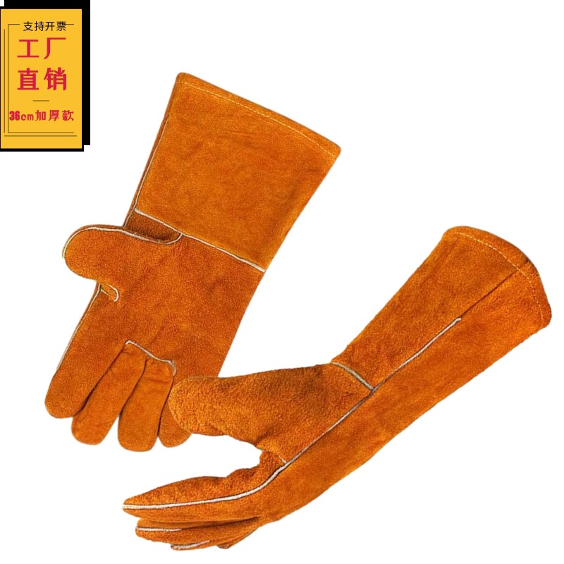 양손용 긴 용접 장갑, 소가죽 용접 장갑, 이중 두께의 노동 보호 용접 작업 장갑
