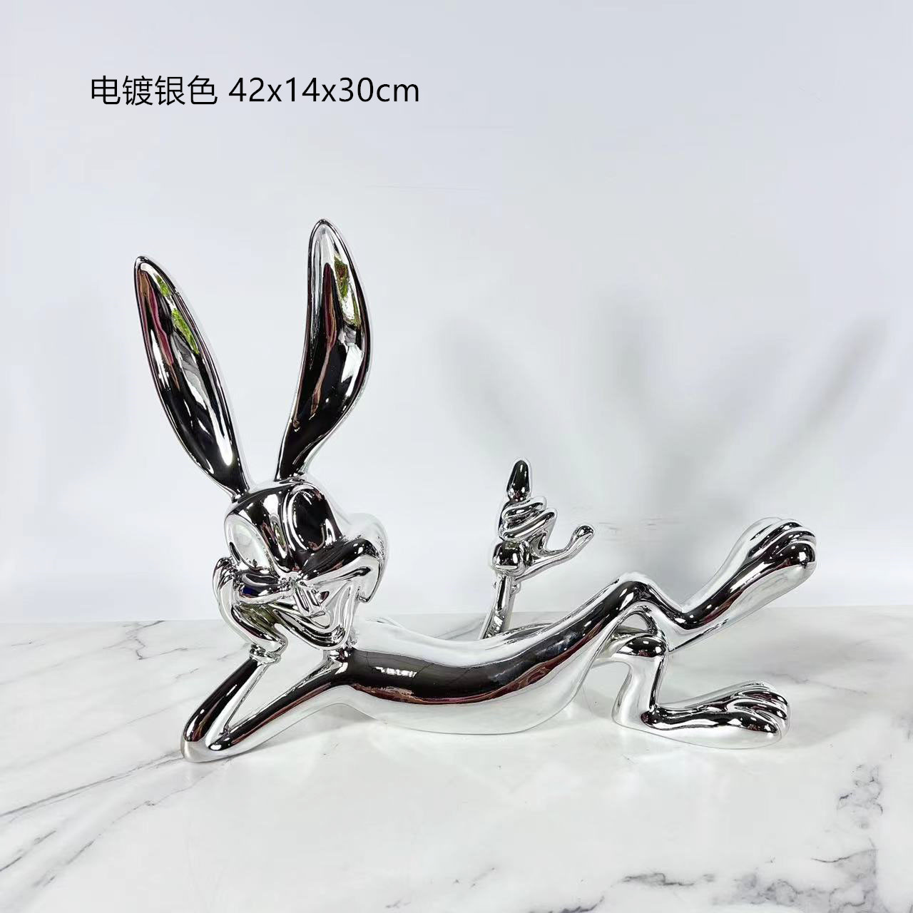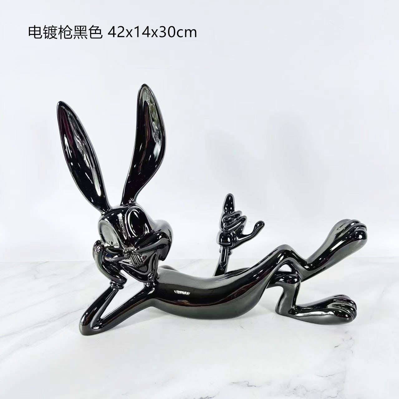 모델 하우스 영업 부서 거실 TV 캐비닛 전기도금 몰려 드는 토끼 수지 조각 공예 부드러운 장식