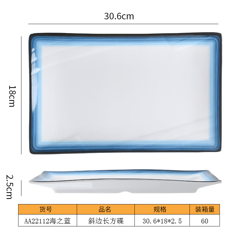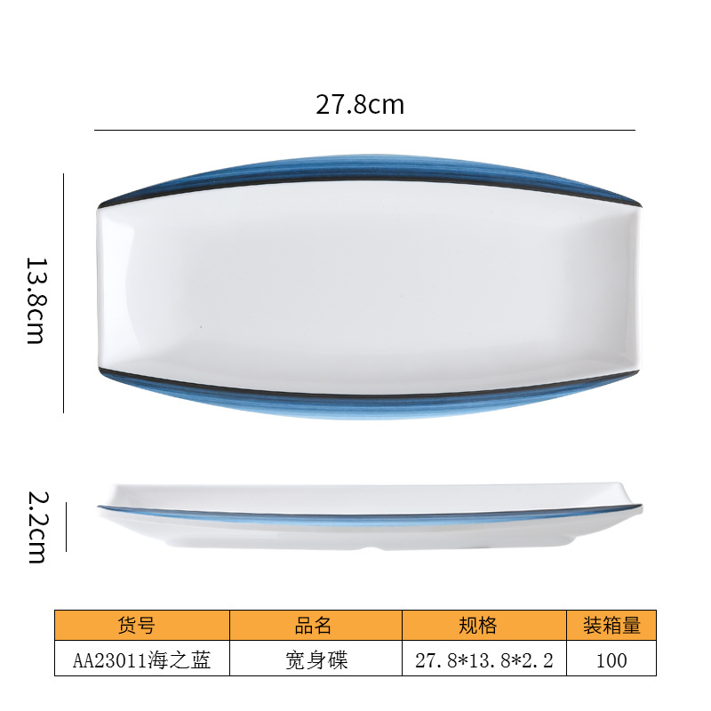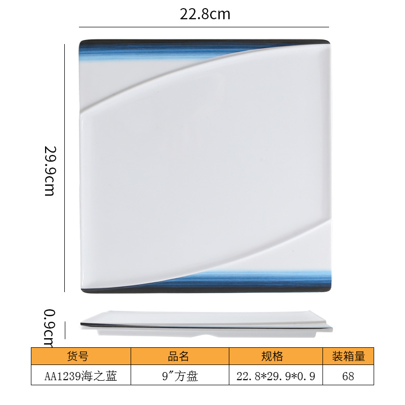 Enlone A5 멜라민 식기 접시 호텔 뷔페 레스토랑 바다색 타원형 사각 접시 도매 가정용