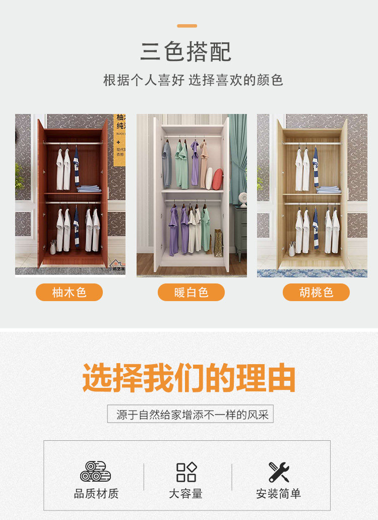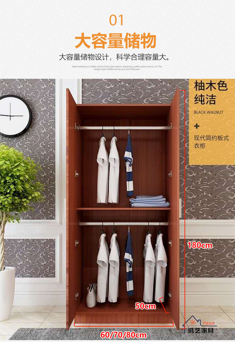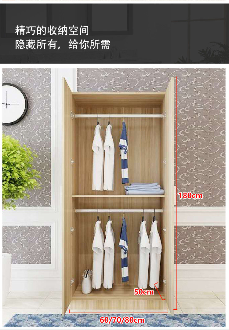 간단한 옷장 60 와이드 심플 모던 경제적 인 단단한 나무 조립 어린이 임대실 침실 옷장 보관 캐비닛