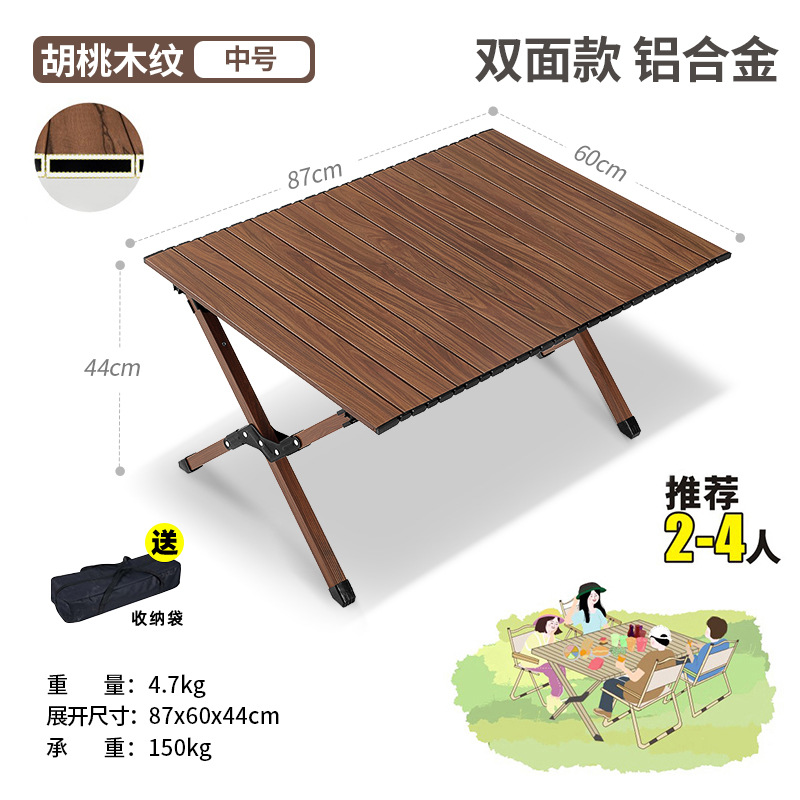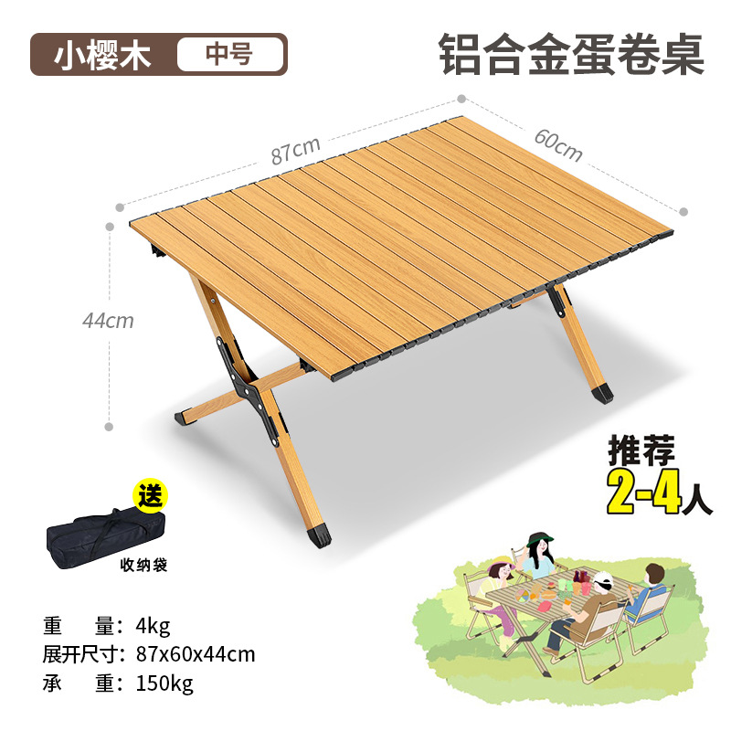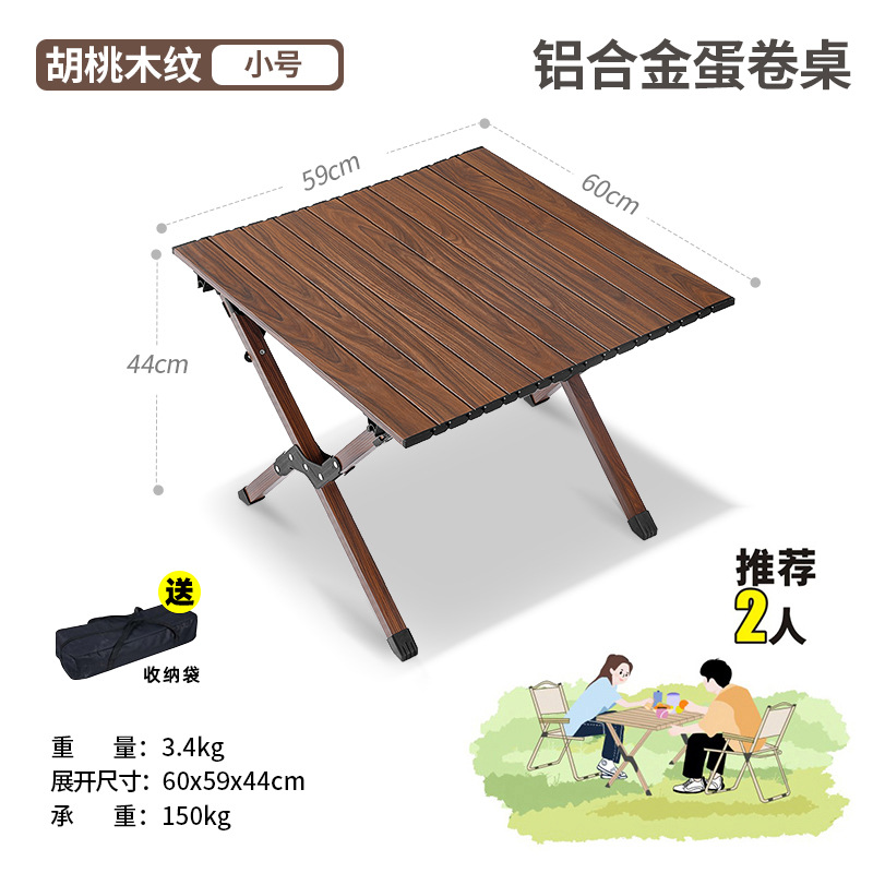 야외 접이식 우드 그레인 알루미늄 합금 테이블 캠핑 장비 용품 휴대용 피크닉 요리 너도밤 나무 계란 롤 테이블 및 의자스토어 가기