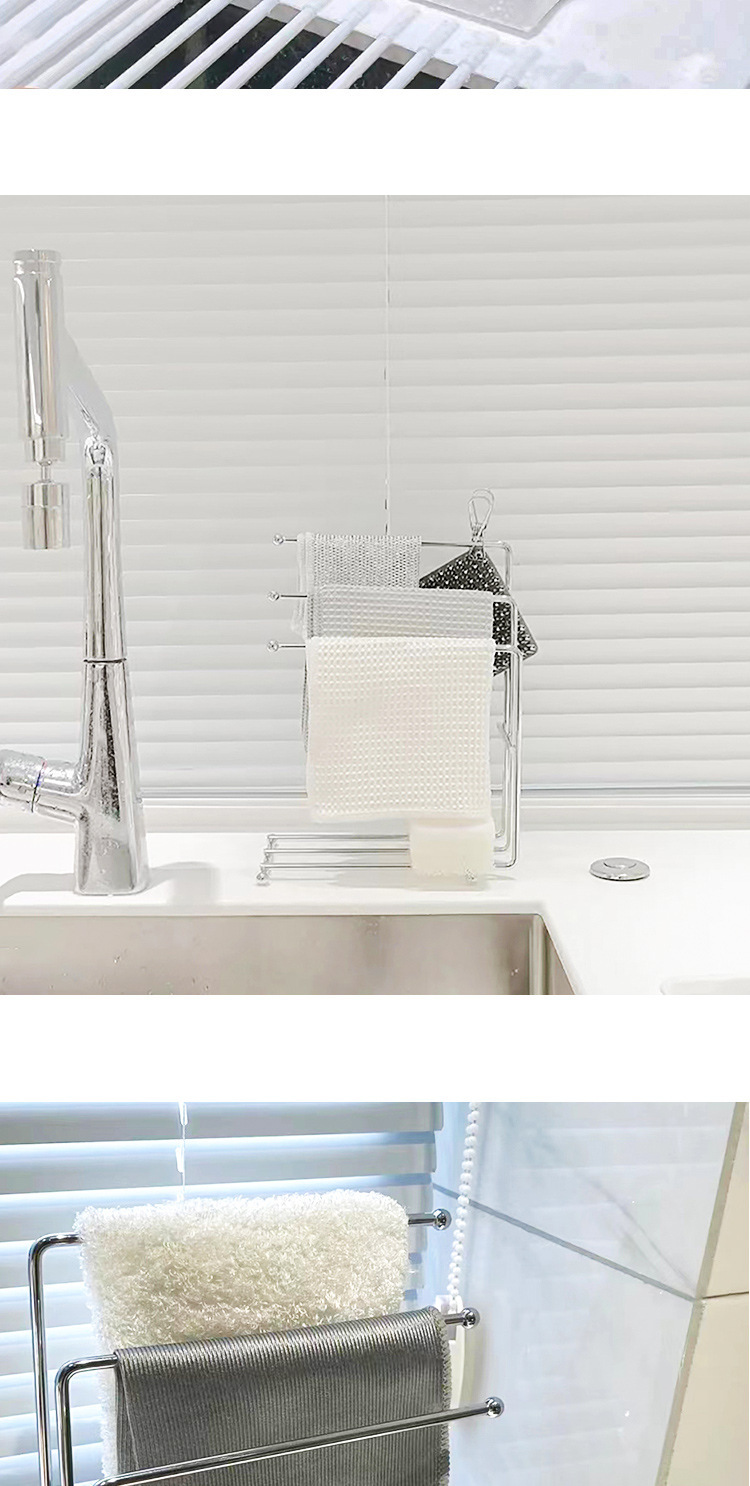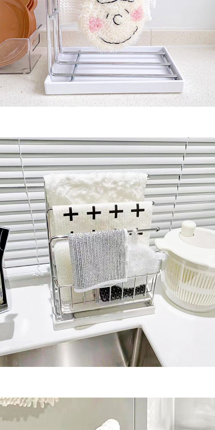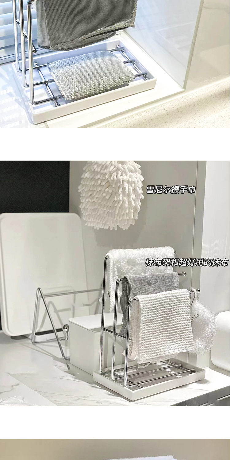 收纳清洁、厨房台面收纳架抹布洗碗布沥水置物架免打孔毛巾擦布架子抹布挂架、家居用品神器