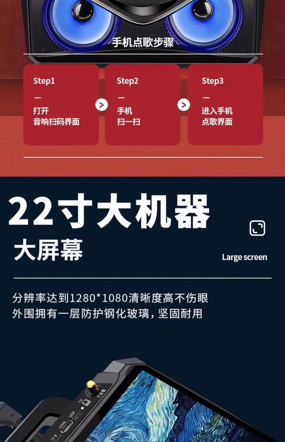 비디오 블루투스 오디오 디스플레이 홈 대형 스크린 K-노래 블루투스 스피커 야외 휴대용 비디오 오디오스토어 가기