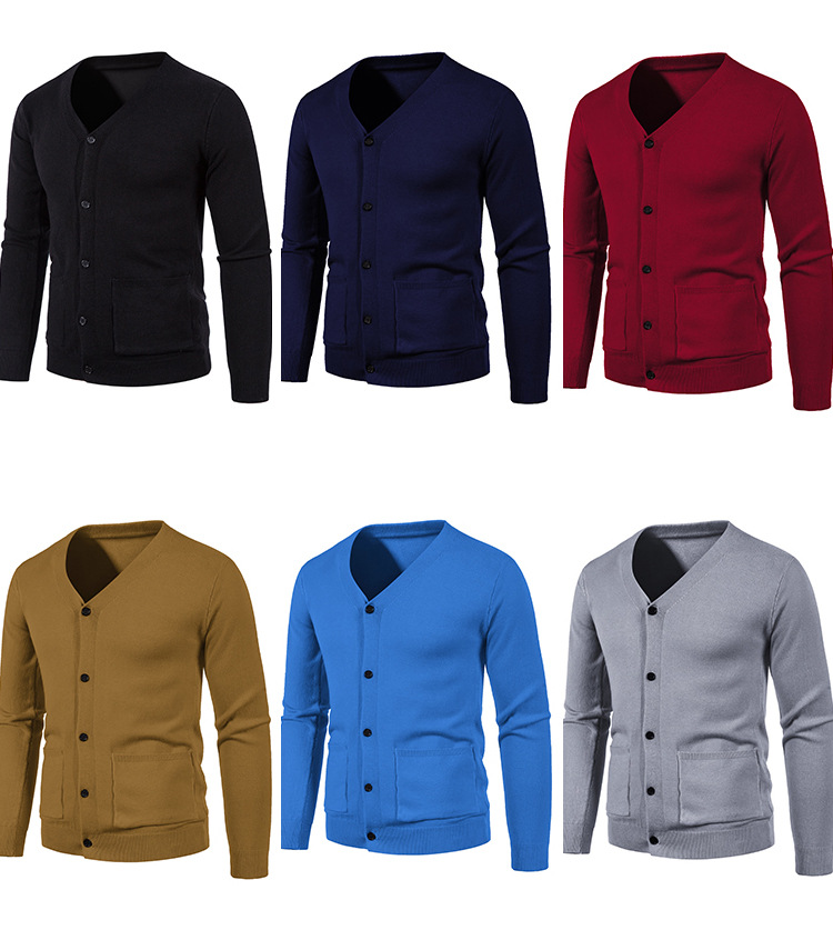 2022 국경 간 대외 무역 새로운 남성 스웨터 코트 청소년 단색 V-넥 슬림 버튼 카디건 스웨터스토어 가기
