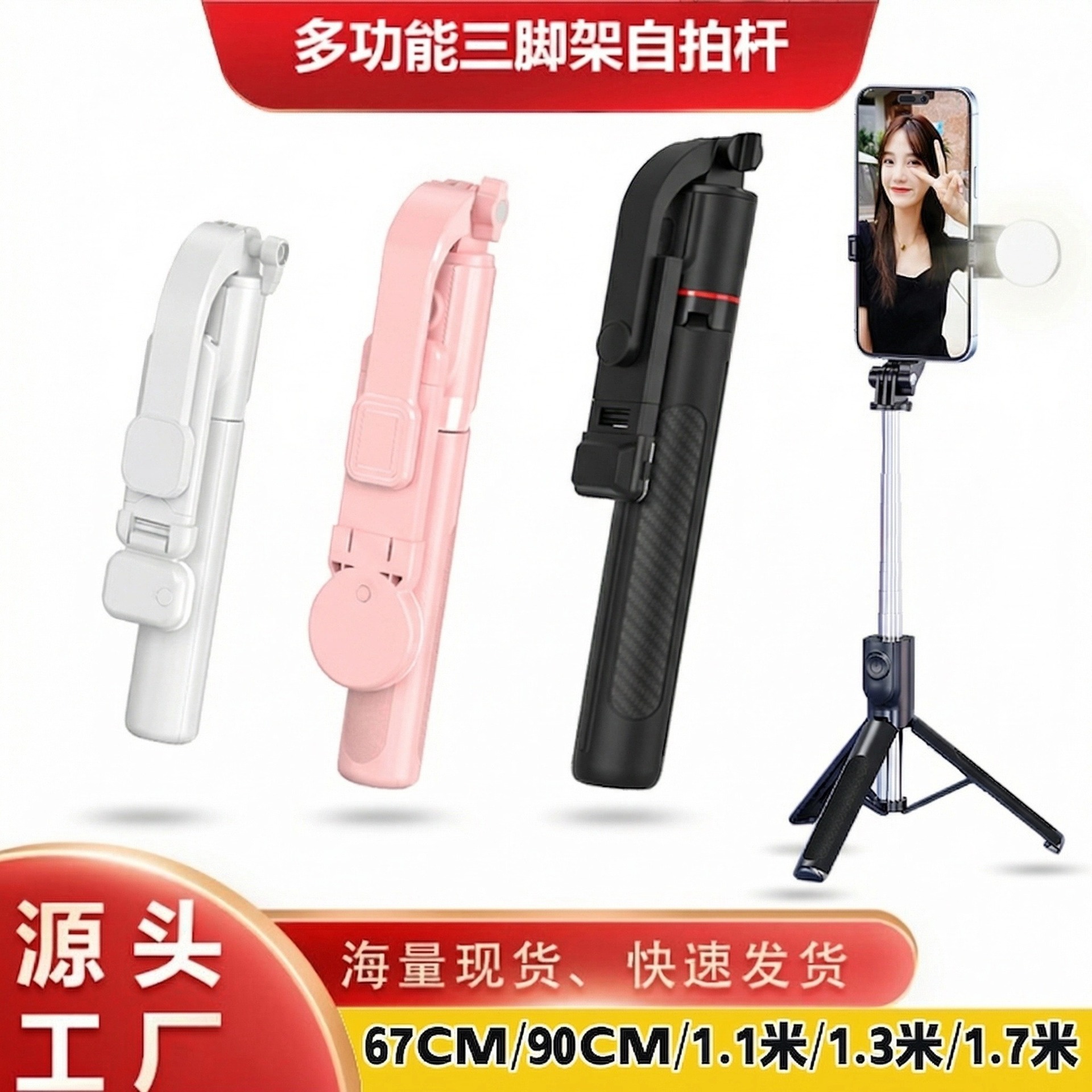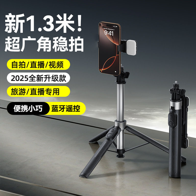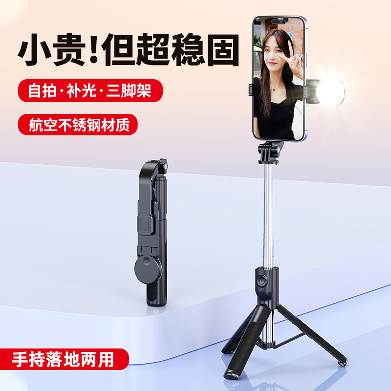 새로운 삼각대 블루투스 셀카 스틱 미니 휴대 전화 사진 조명 셀프 타이머 유물 스틱 접이식 미니 텔레스코픽