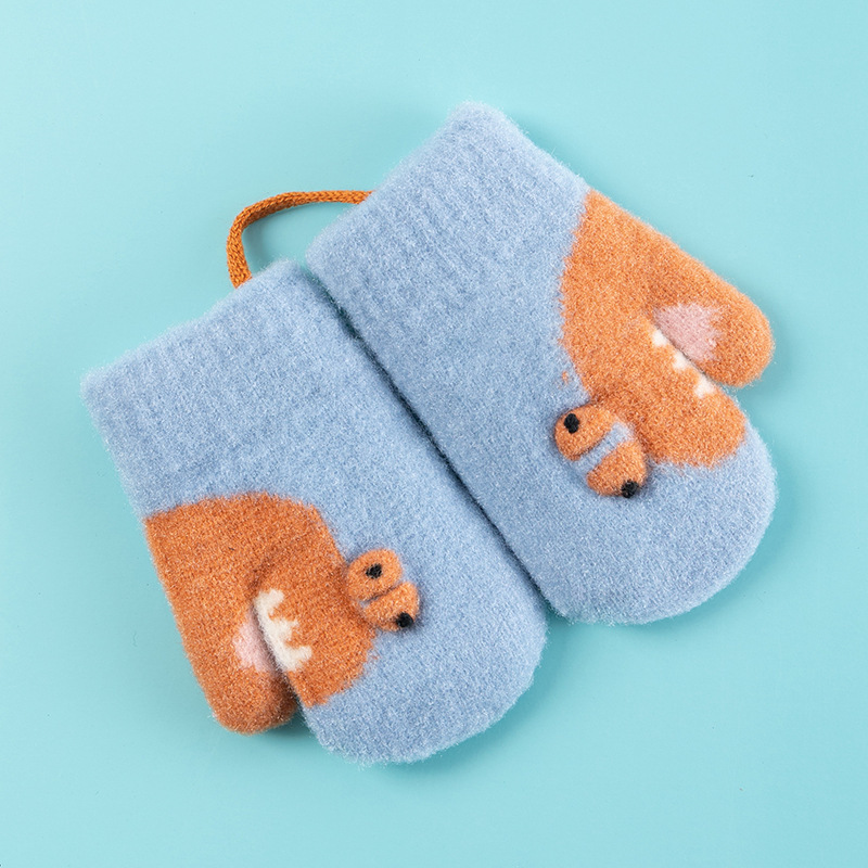 Xuehuaxiu 어린이 따뜻한 장갑 귀여운 만화 니트 목 더블 기모 두꺼운 장갑 도매스토어 가기