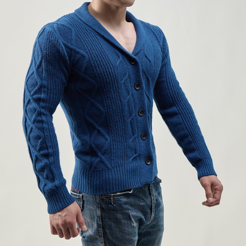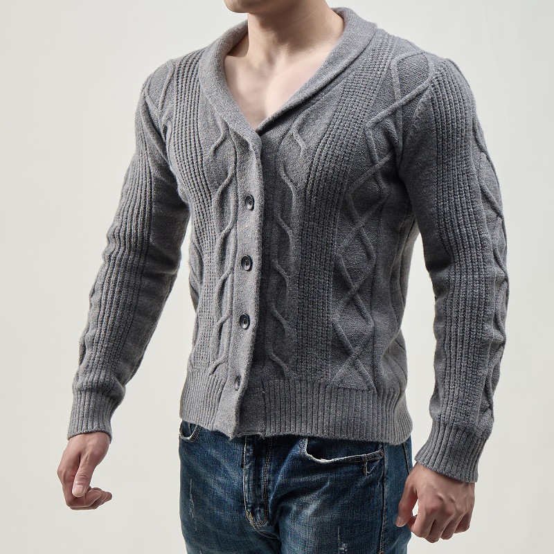 대외 무역 가을과 겨울 새로운 패션 남성 카디건 싱글 브레스트 라펠 캐주얼 니트 스웨터 코트
