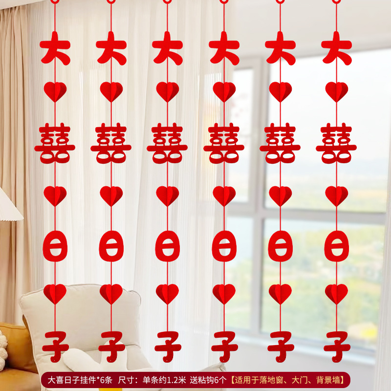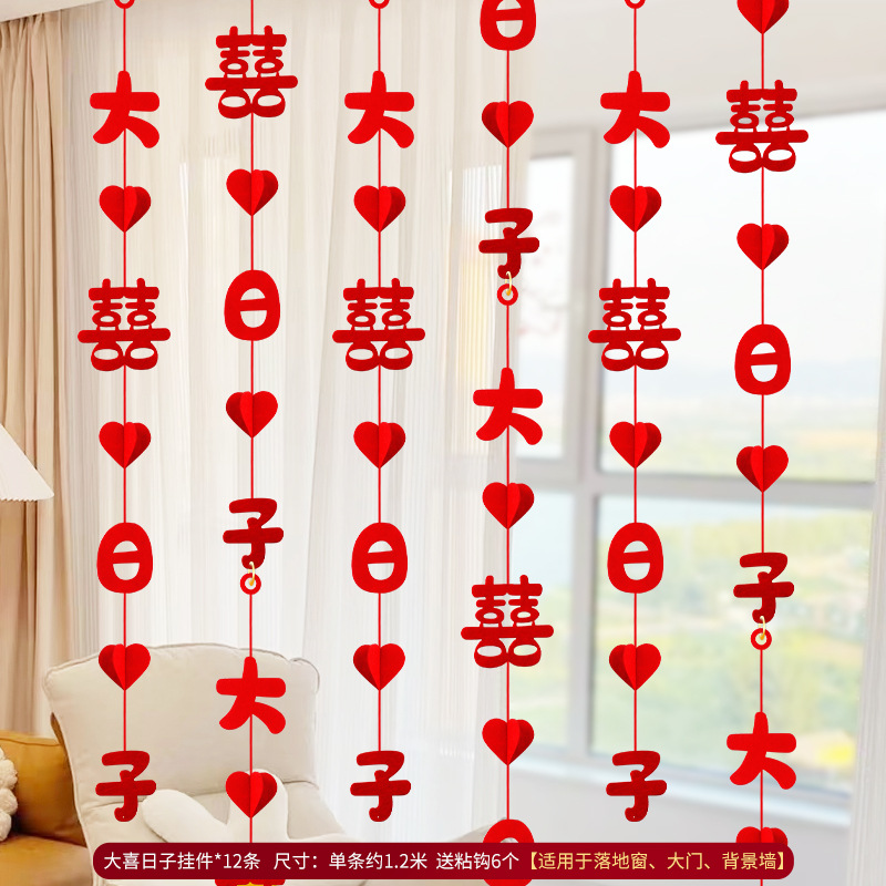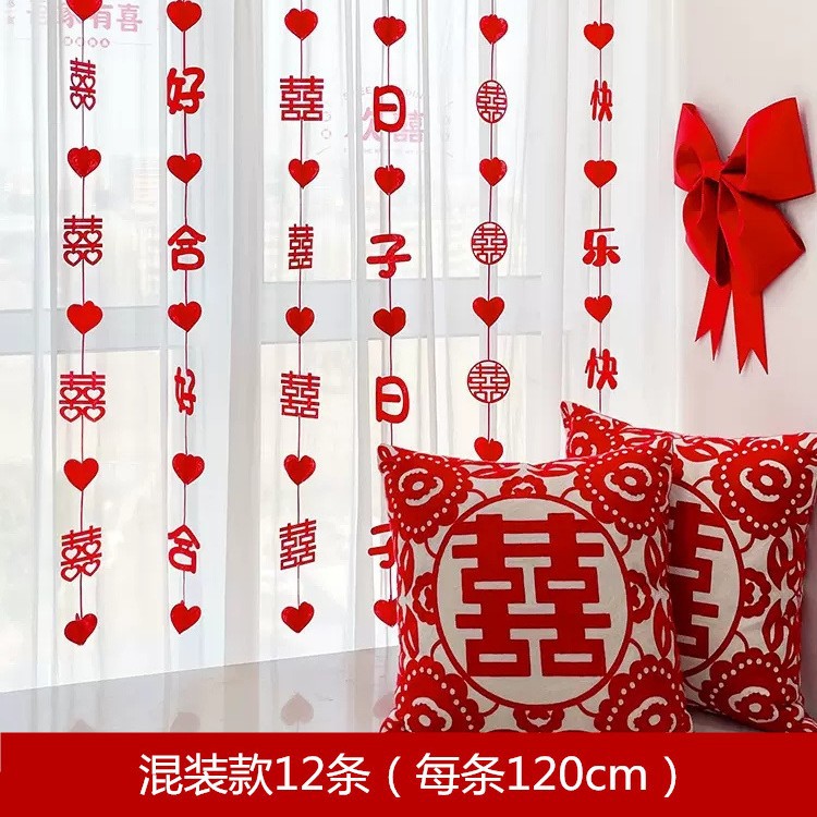 웨딩 긴 행복한 캐릭터 꽃 웨딩 룸 배열 웨딩 커튼 매달려 장식 침실 거실 장식 웨딩 용품스토어 가기