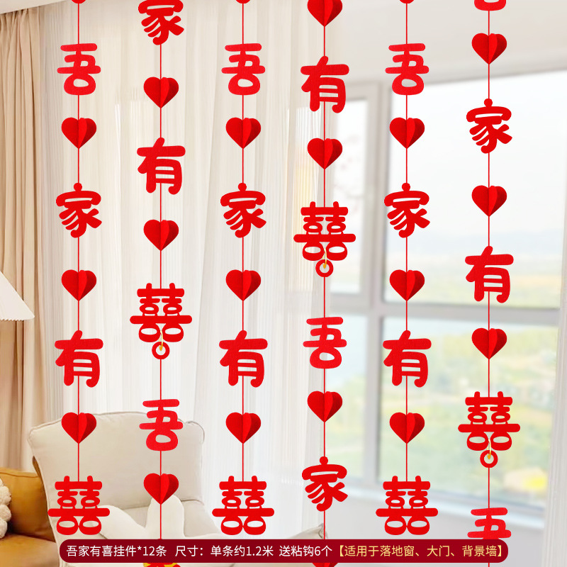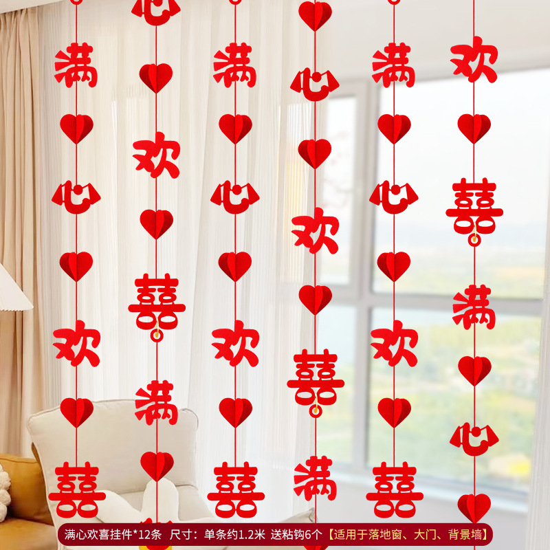 웨딩 긴 행복한 캐릭터 꽃 웨딩 룸 배열 웨딩 커튼 매달려 장식 침실 거실 장식 웨딩 용품