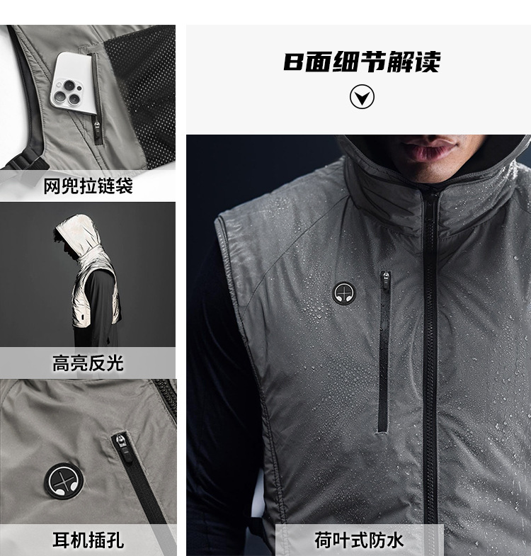 크로스보더 전술 조끼 남성용 야외 야간 반사 후드 조끼 다기능 방수 러닝 스포츠 재킷