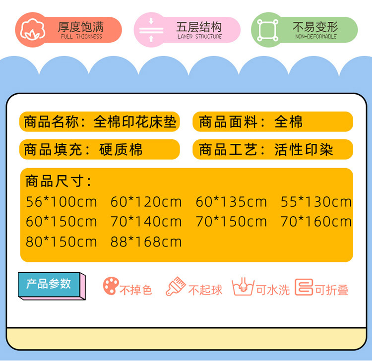 면 어린이 매트리스 이동식 및 빨 두꺼운 만화 아기 유치원 낮잠 매트 학생 기숙사 작은 매트 도매