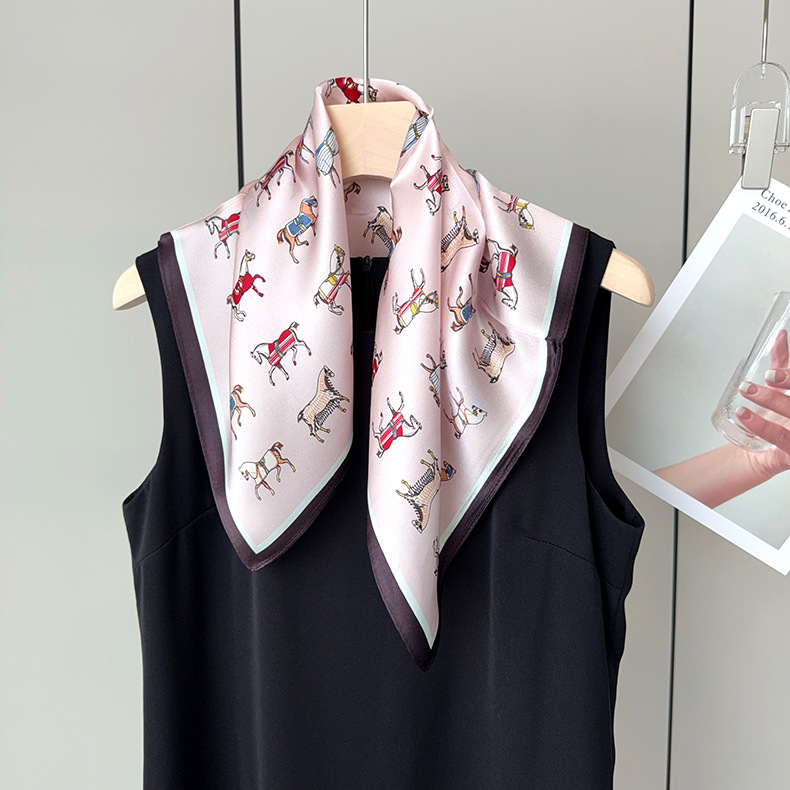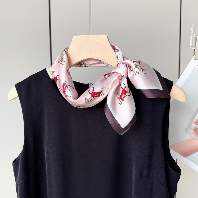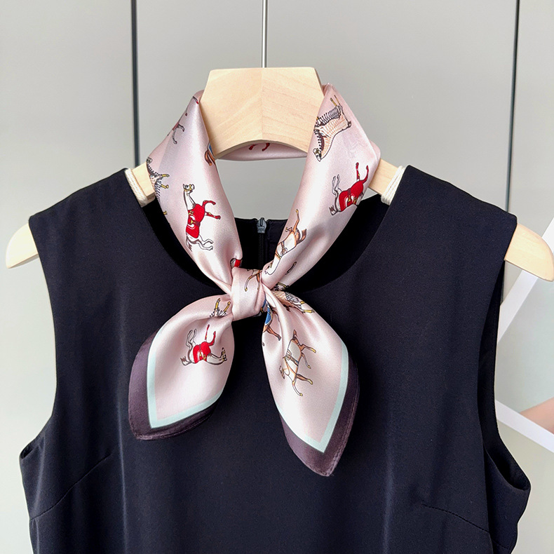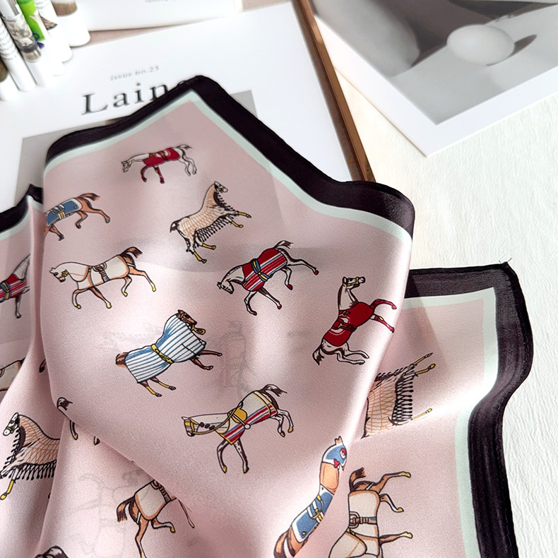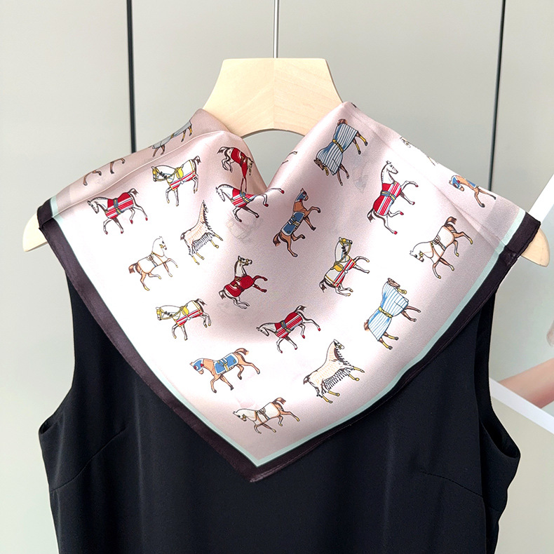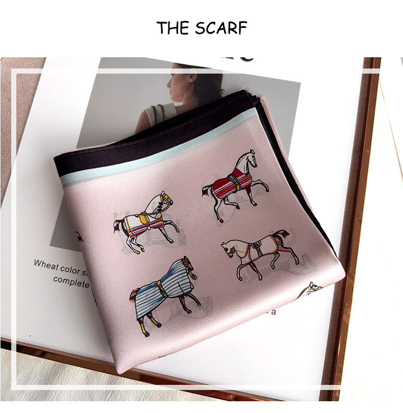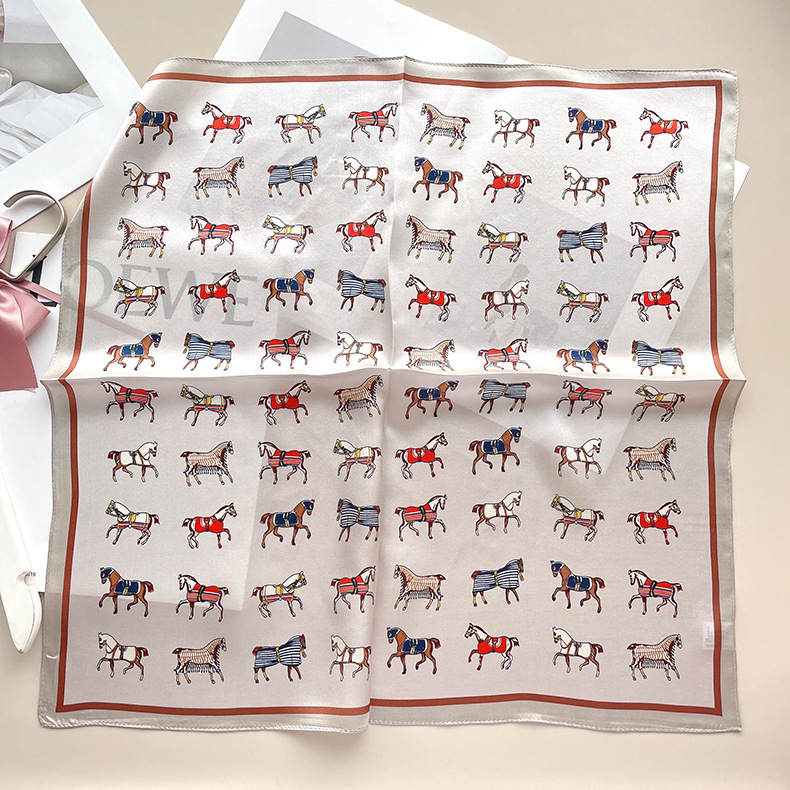 유럽 복고풍 작은 조랑말 뽕나무 실크 스카프 여성 한국어 버전 작은 사각형 스카프 전문 통근 스카프 얇은 중국어 사각형 스카프